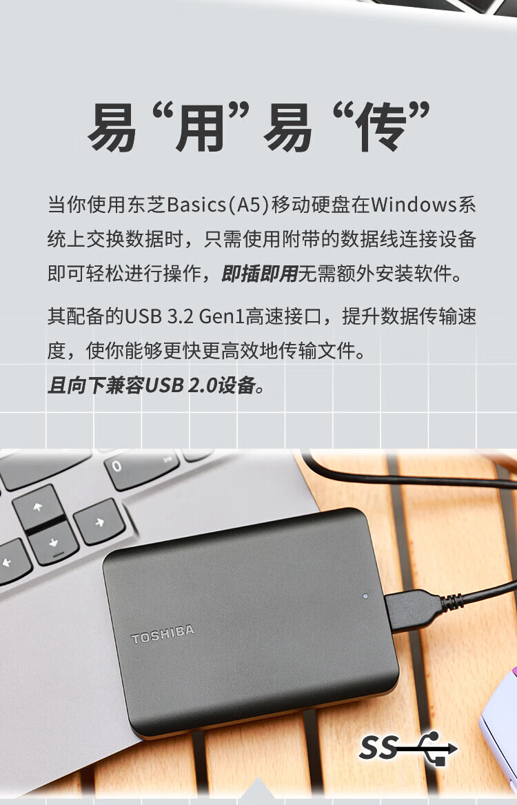 TOSHIBA 2TB mobile hard drive mechanism New Xiaohei A5 USB3.2 Gen 1 2.5 inches Mac compatible data storage thin and portable