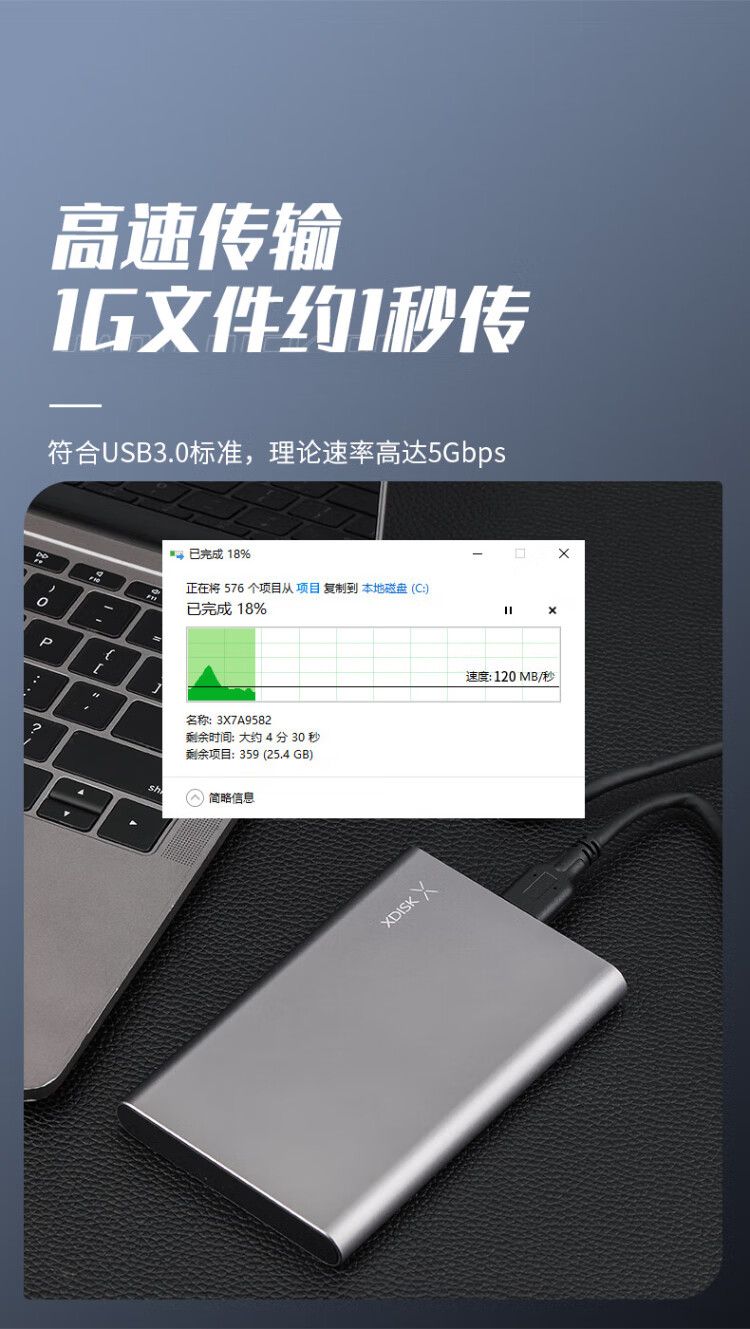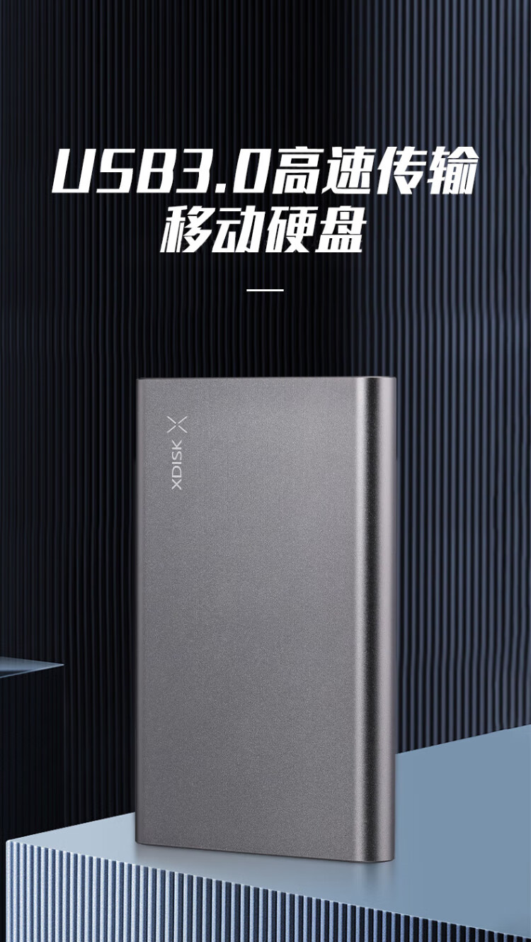 小盘(XDISK)1TB USB3.0金属移动硬盘X系列2.5英寸皓月银 超薄高速便携时尚款文件数据备份存储稳定耐用