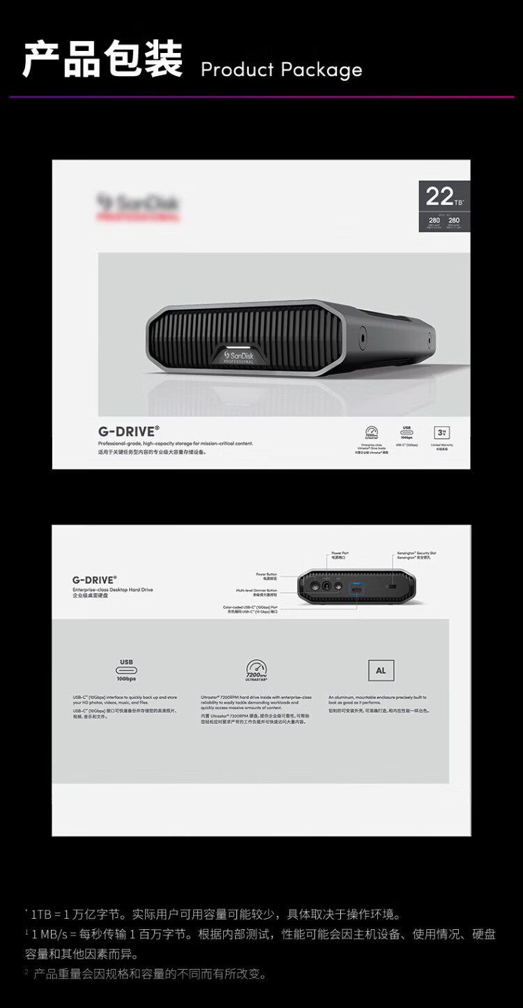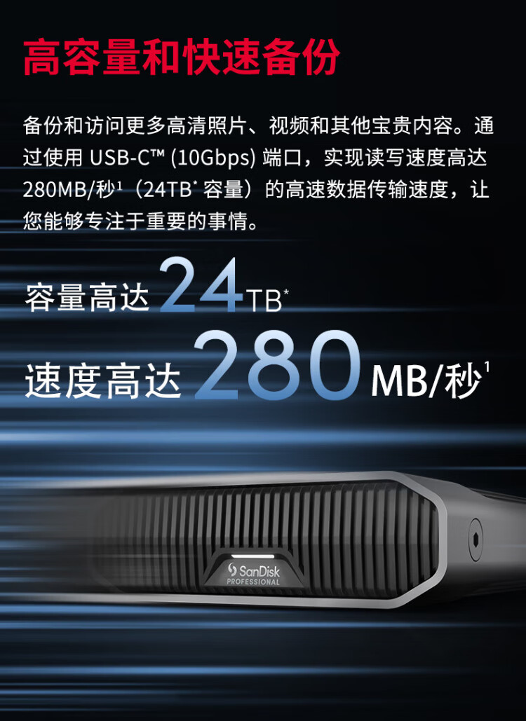 闪迪大师极客 8TB 企业级移动硬盘 3.5英寸大容量 USB3.2 Gen2传输速度260MB/S 手机直连 西部数据公司出品