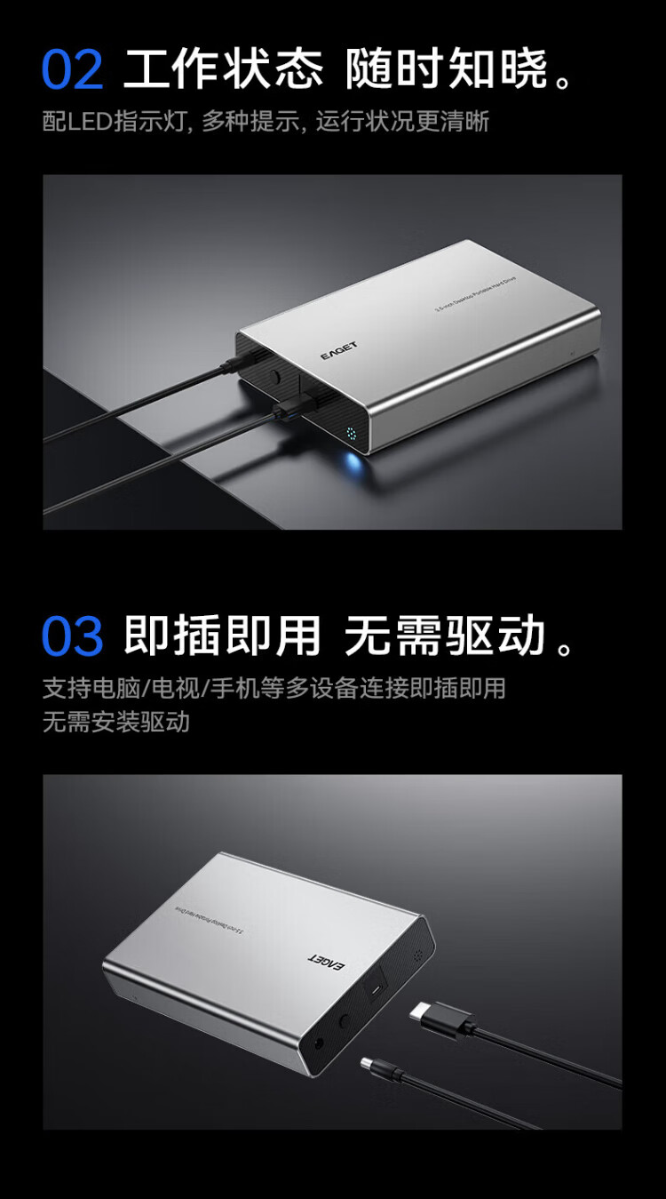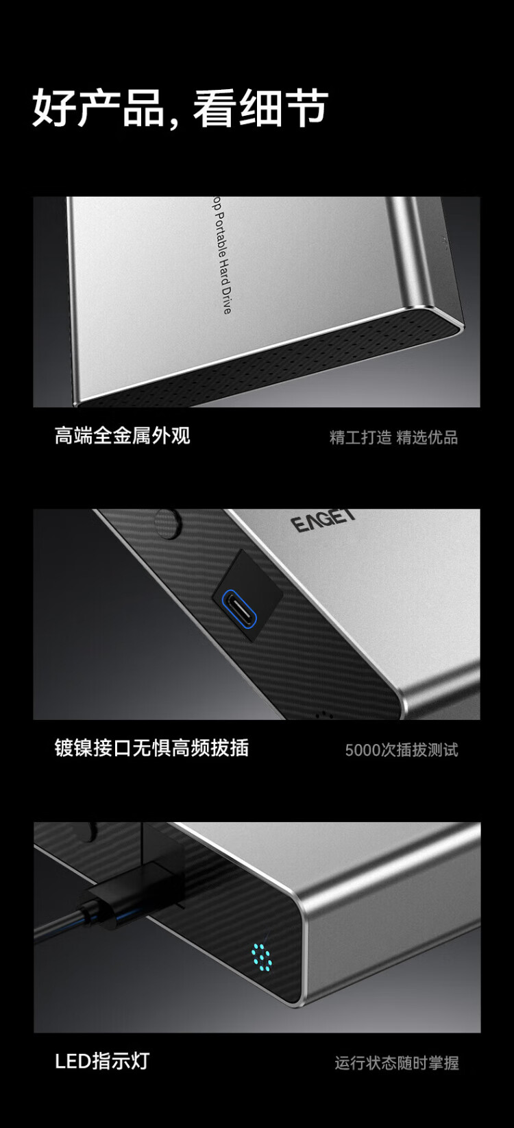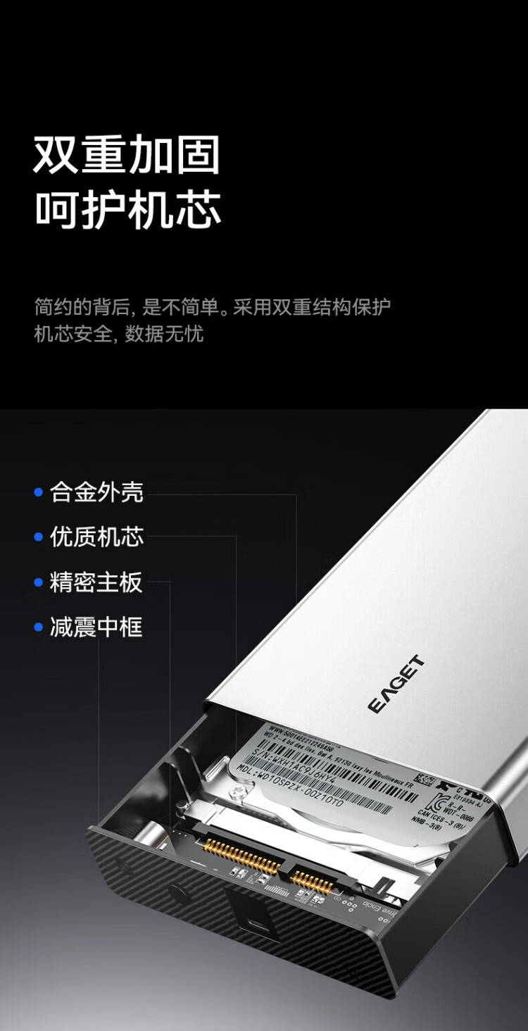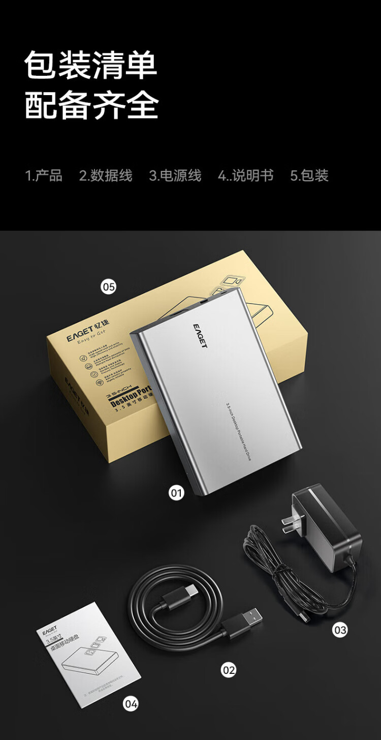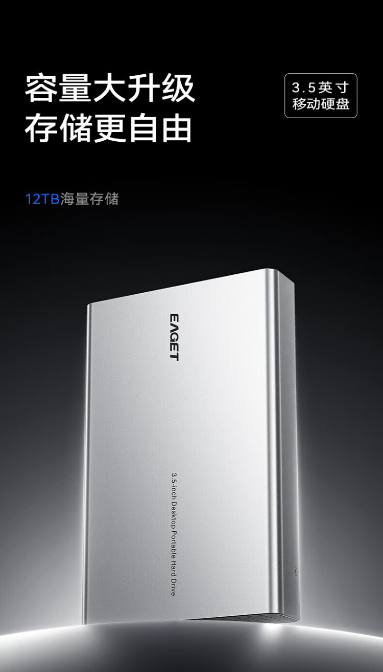 忆捷(EAGET)3TB 移动硬盘桌面式存储Type-C3.1高速大容量存储 3.5英寸