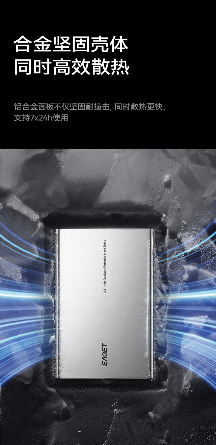 EAGET 14TB mobile hard disk desktop storage Type-C3.1 high-speed large-capacity storage 3.5 inches