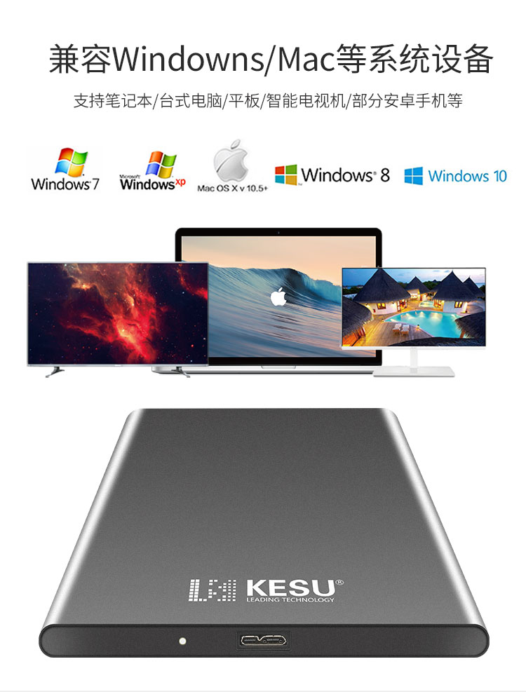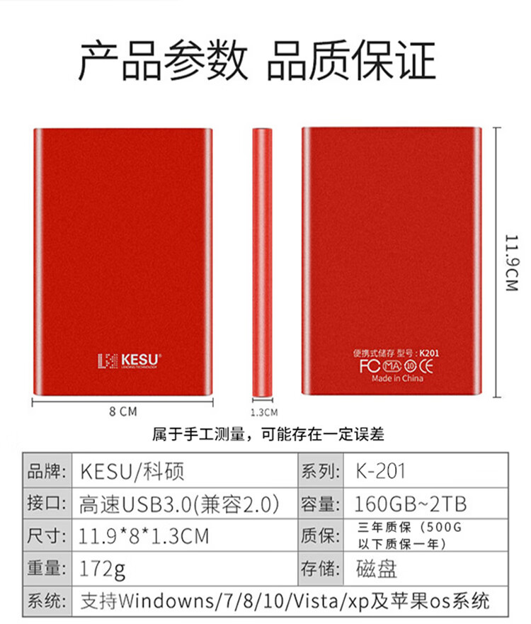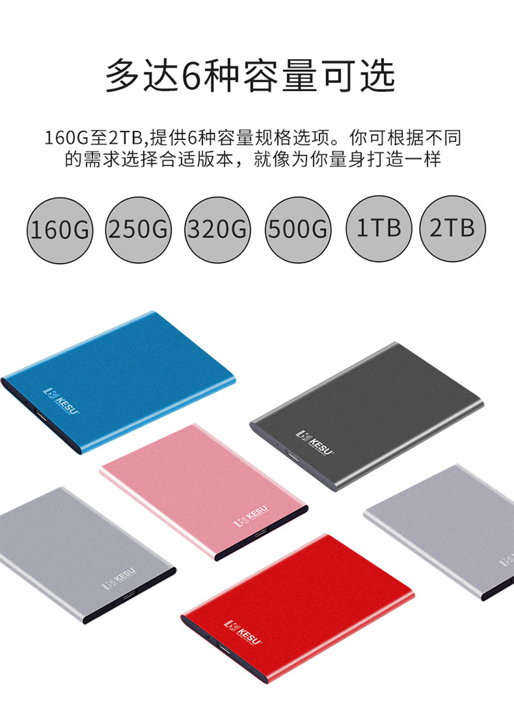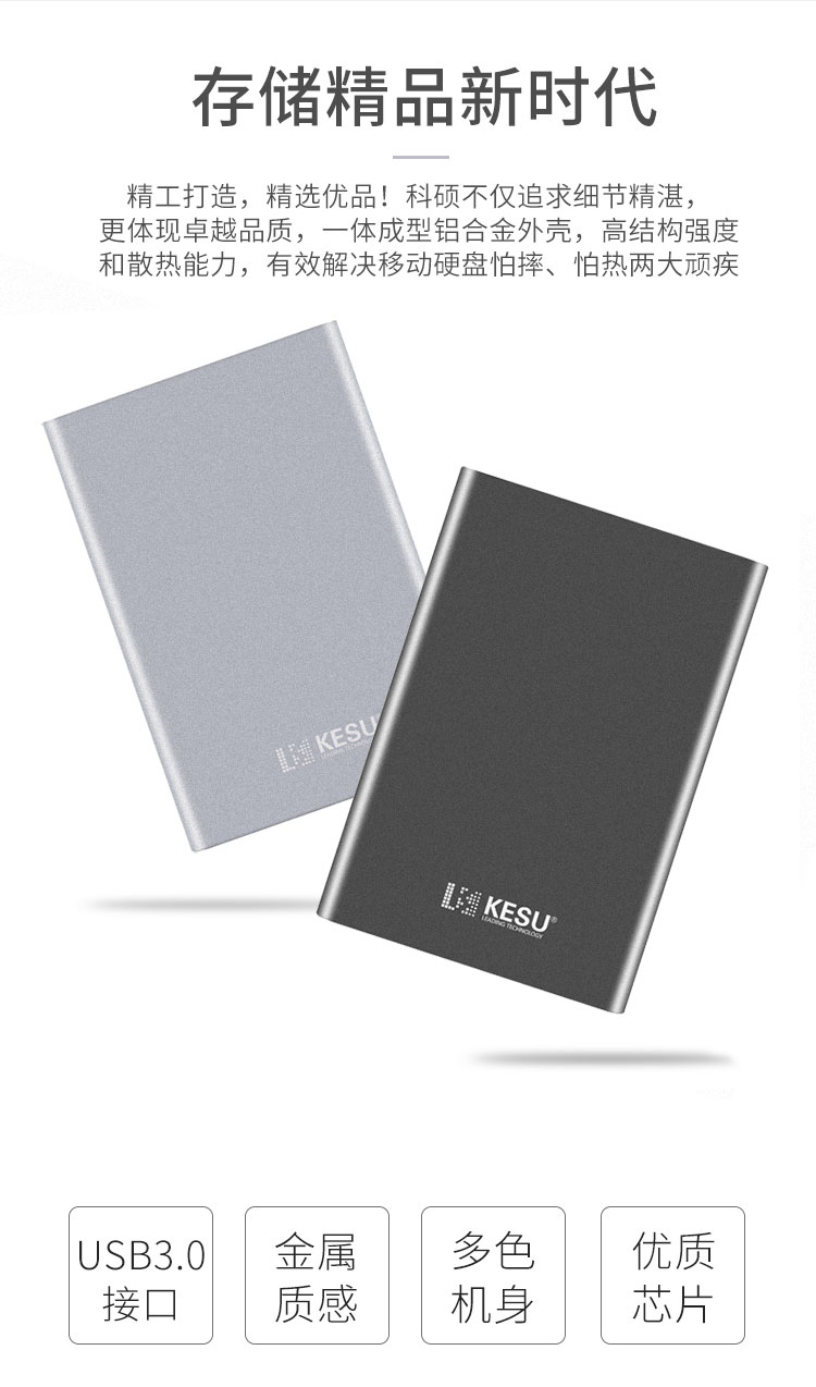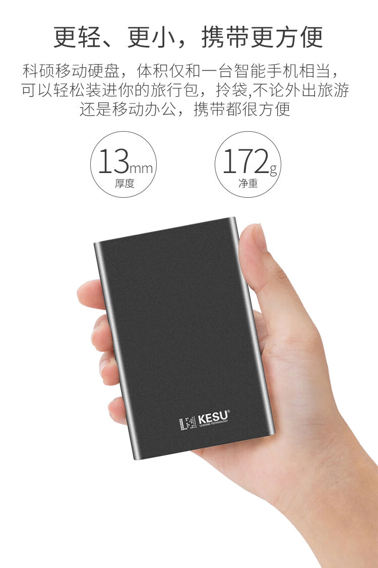 科硕(KESU) 移动硬盘 USB3.0  大容量安全加密 高速外接存储 K201-皓月银 500G  标准套餐