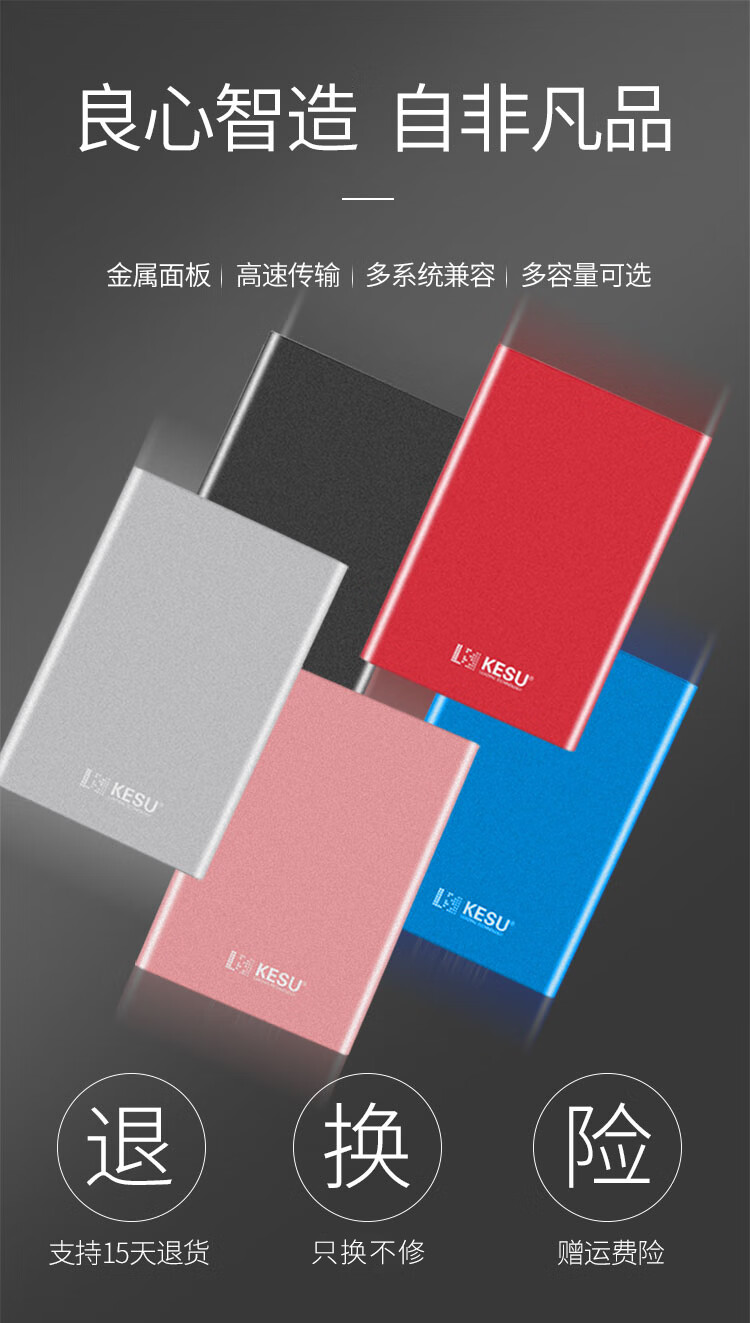 科硕(KESU) 移动硬盘 USB3.0 大容量安全加密 高速外接存储 K201-皓月银 500G 标准套餐