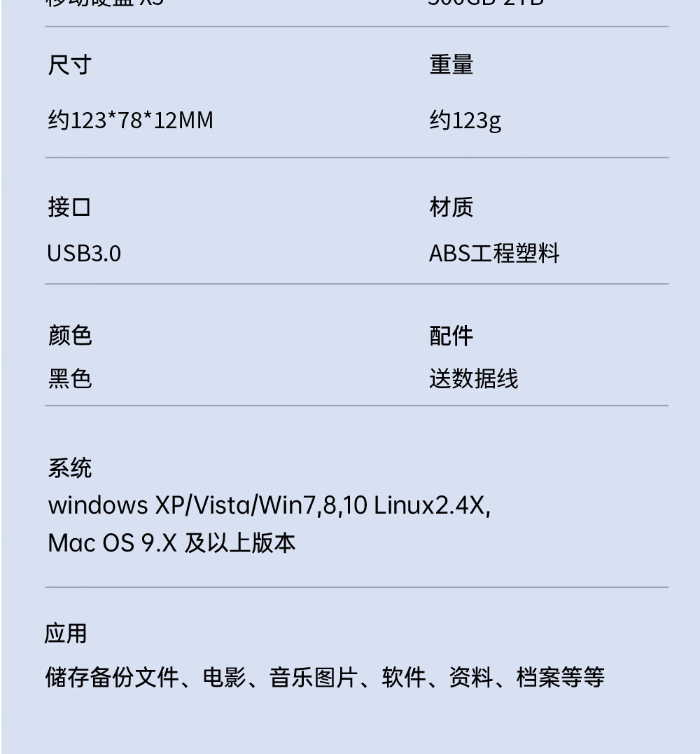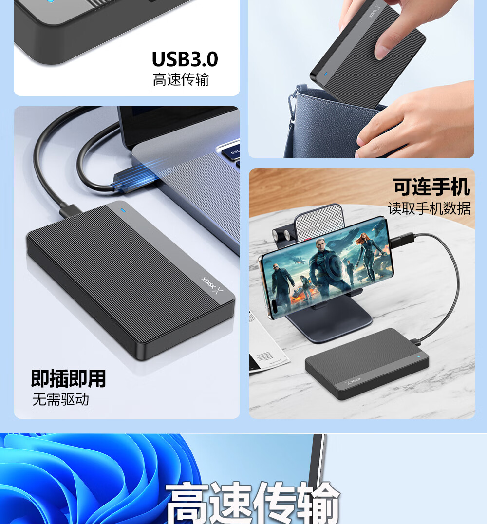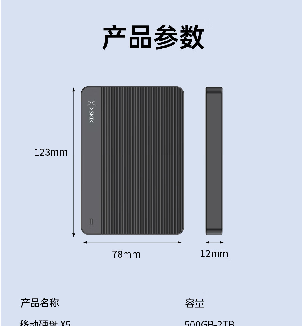 Small disk (XDISK) 500GB USB3.0 mobile hard drive X series 2.5 inches, classic black, business fashion, file data backup storage, high speed, portable and stable