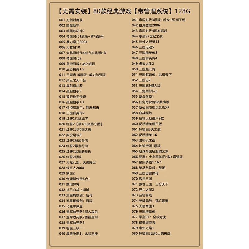 Jisuyou Disque dur de jeu Grands jeux Jeux nostalgiques Disque dur mobile 3.0 en option 500 Go Jeux en option