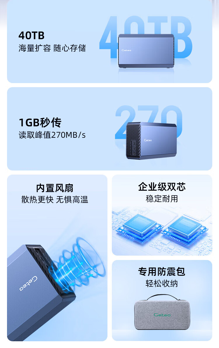 Jieyi 40t disque dur mobile double baie 56t grande capacité 3,5 pouces 48t stockage de bureau 28t disque mécanique vertical de niveau entreprise 24t ordinateur externe haute vitesse 20t disque dur de jeu 32 To disque dur mobile intégré double disque/sac antichoc inclus/expédié par SF Express