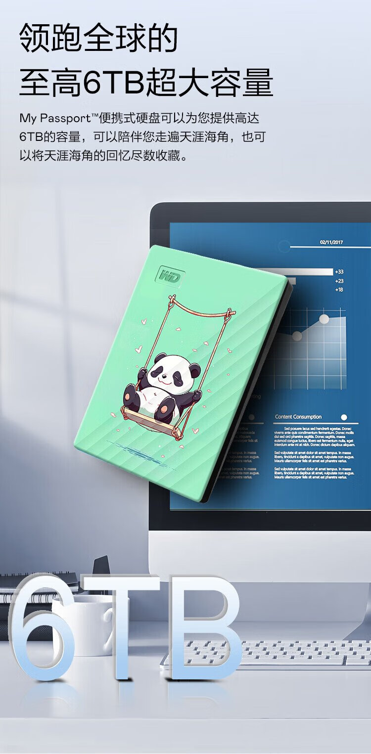 西部数据(WD) 移动硬盘 USB3.0 My Passport系列 2.5英寸 机械硬盘 手机笔记本电脑外接 外置存储办公 家庭存储 彩绘-萌宝(My Passport随行) 5TB