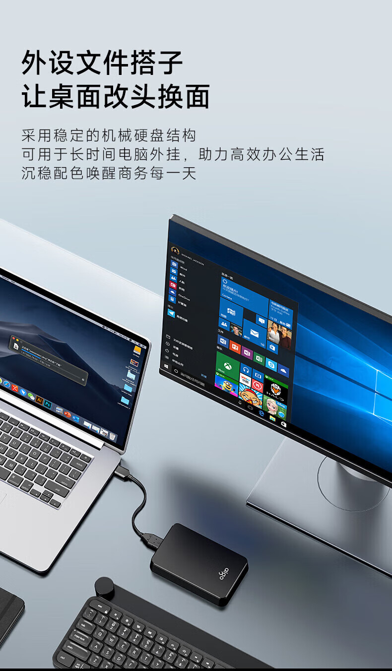 aigo HD809外置移动硬盘 USB3.0高速稳定传输 2.5寸商务便携 2TB 商务黑 送硬盘包