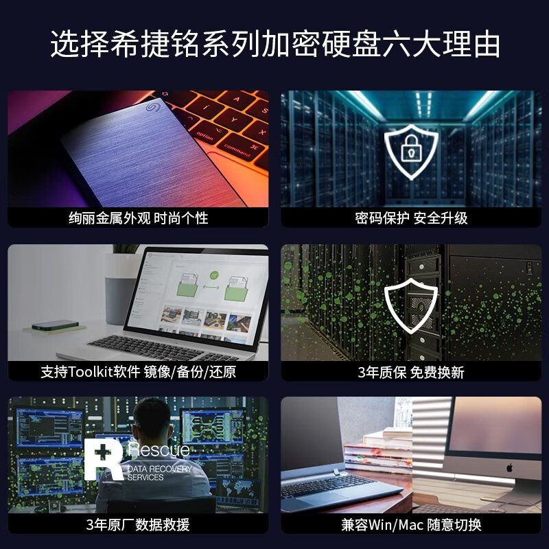 Seagate Xinming mobile Festplatte, Datenverschlüsselungsfestplatte, USB3.0 2,5 Zoll, kompatibel mit Mac-Computern und Notebooks, inklusive Datenwiederherstellung, Starlight Silver, kostenloses Hartschalengehäuse, 5 TB