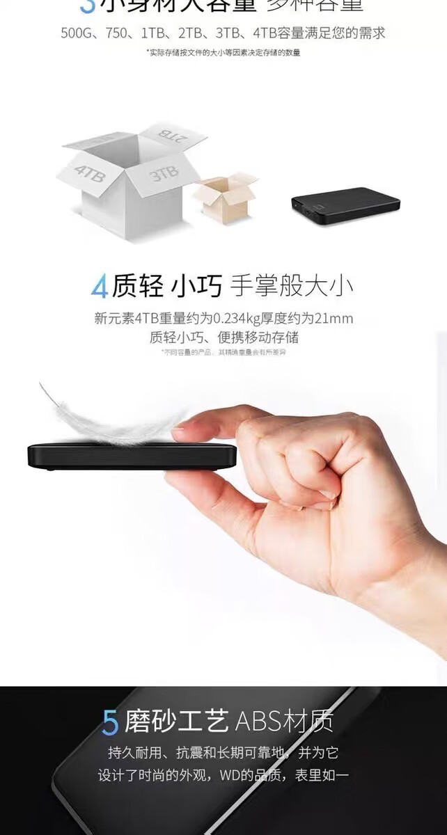 Western Digital WDWD mobile Festplatte 2T/1T/500G High-Speed ​​USB3.0 externer Computer universal mattschwarz 2TB2TB2TBX offizieller Standard