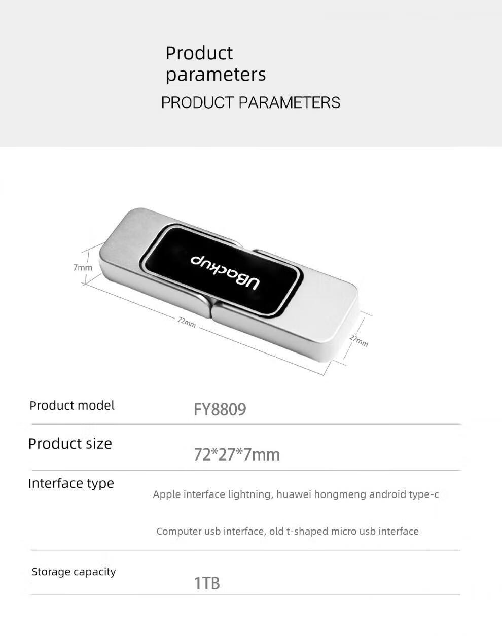 Western Thunder 4-in-1-Mini-High-Speed-Mobile-Kleinfestplatte Android- und Apple-Handy-Fotoalbum Automatisches Backup-Artefakt leuchtende U-Disk 1 TB USB3.0