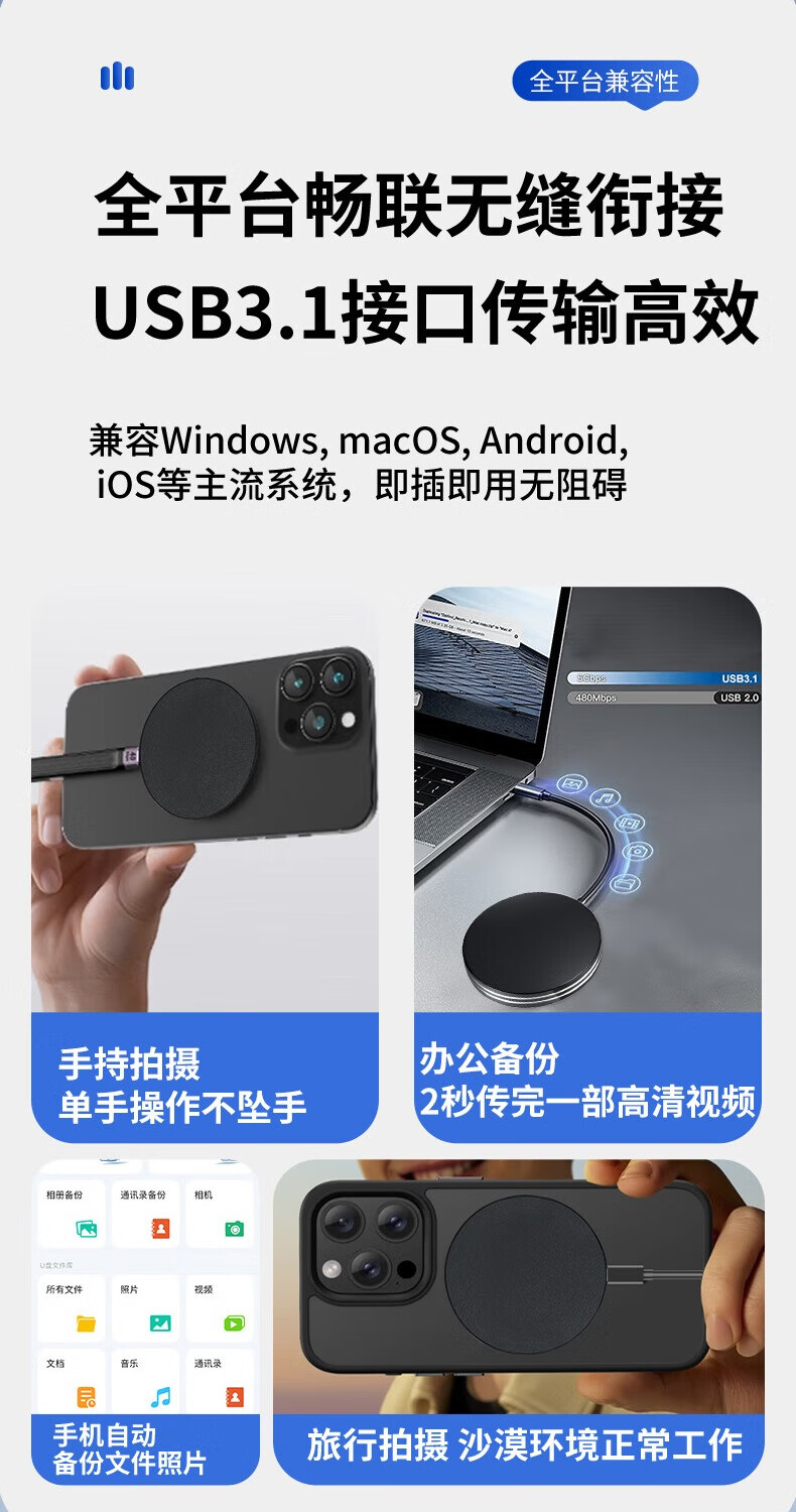 Feiyongzhuo oficial ultrafino auténtico teléfono móvil de estado sólido disco duro magnético disco duro móvil 8TB computadora de alta velocidad y gran capacidad disco duro externo universal de estado sólido 8T negro lectura y escritura de alta velocidad + chip de memoria flash coreano + cifrado de soporte