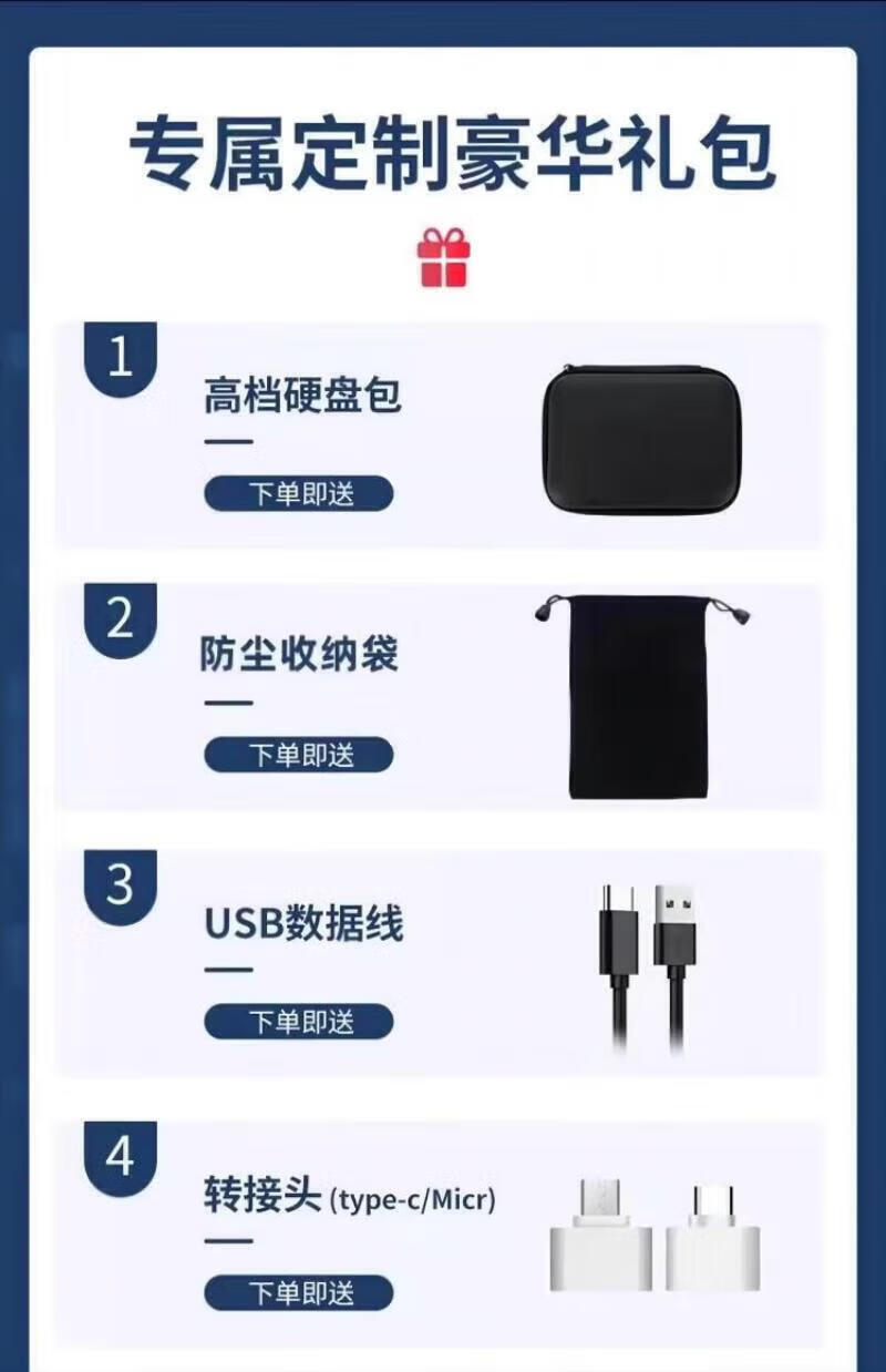 HUWEI universal 16T mobile hard drive 8T high-speed read and write large-capacity hard drive external 4T solid-state storage 2t 1TB Moyu black 16TB + rich gold + three-year warranty +