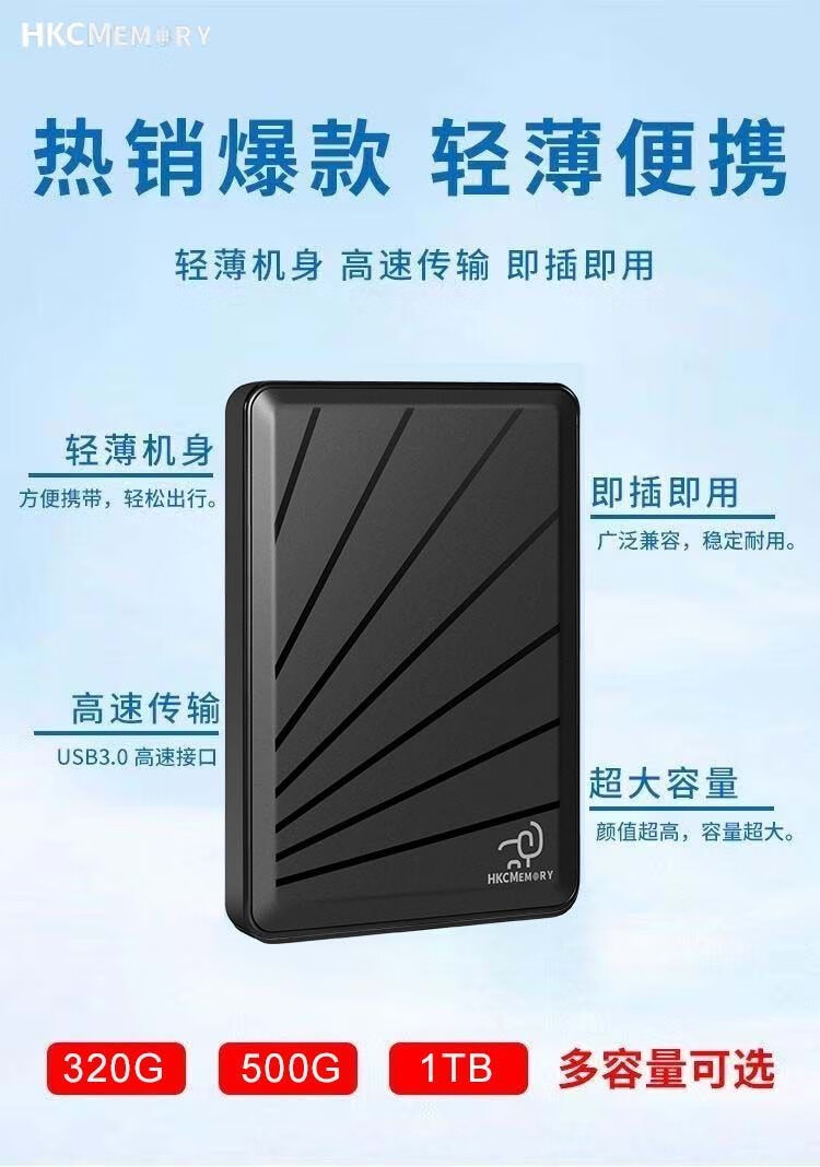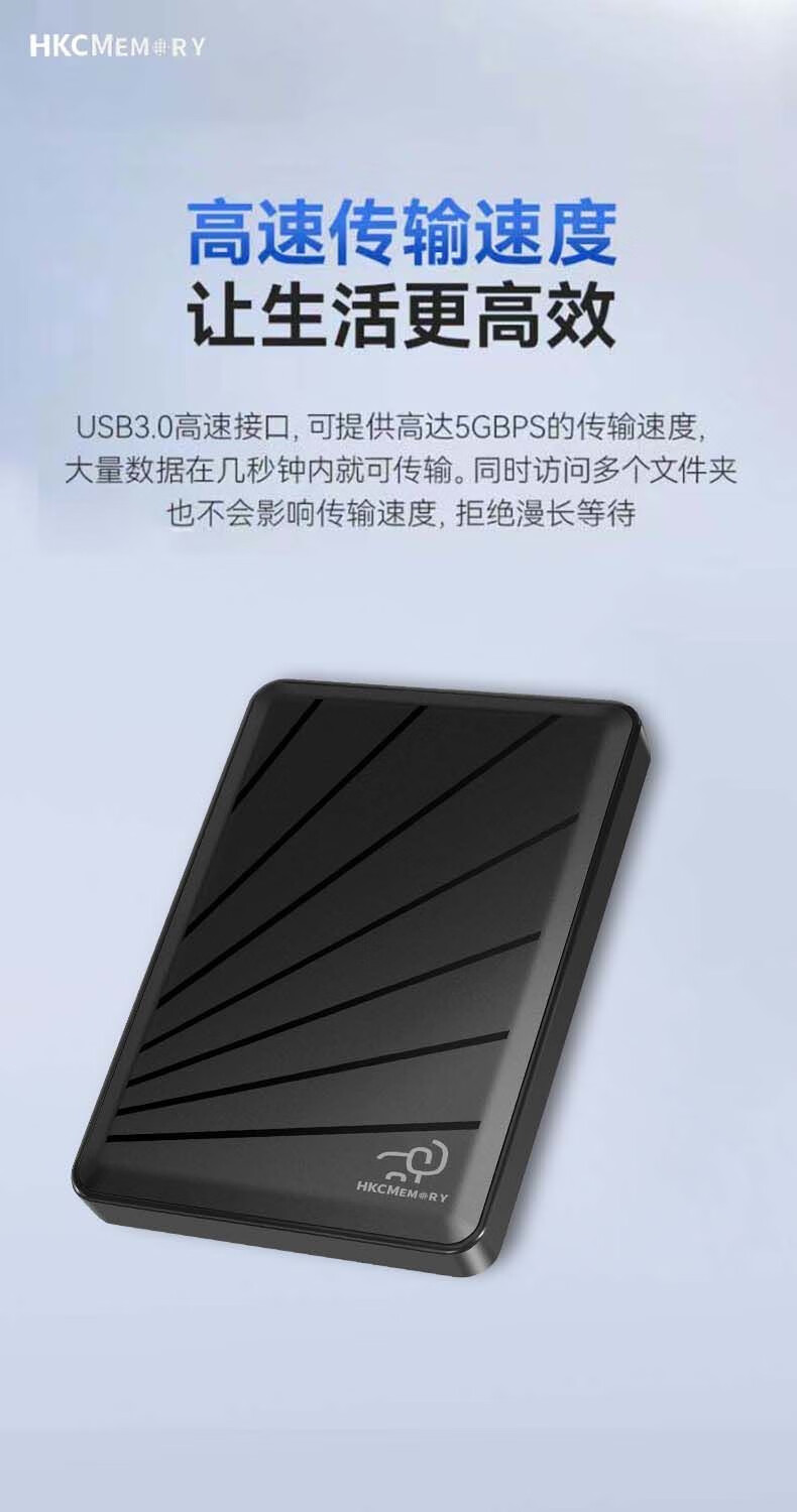 HKC Huike mobile hard drive 1TB large capacity USB3.0 secure high-speed storage external computer universal portable Huike Charming Black 250GB