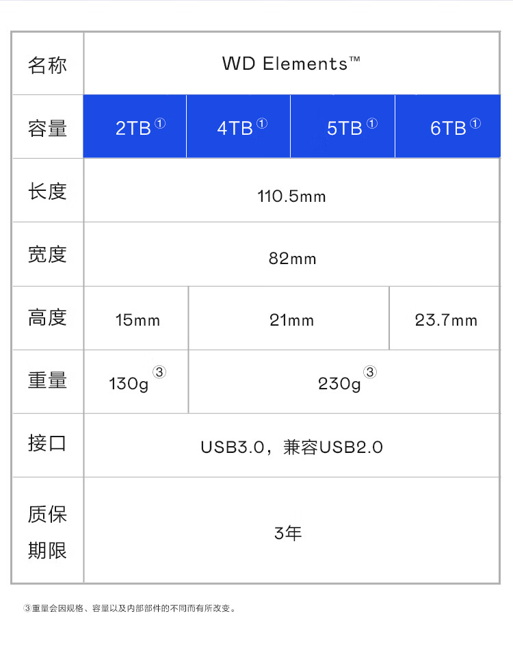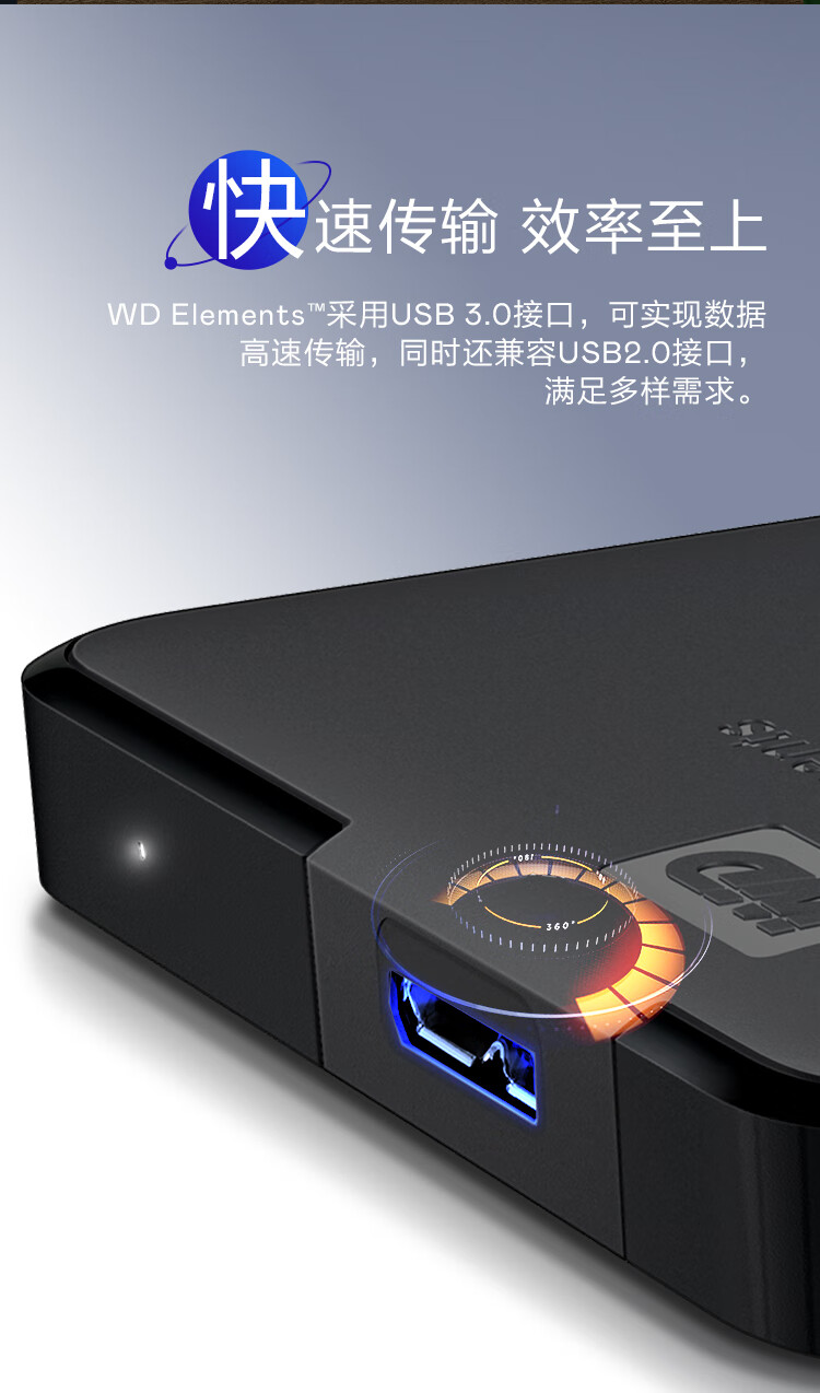 西部数据(WD)4TB 移动硬盘 USB3.0 元素系列 2.5英寸 机械硬盘 笔记本电脑外接 外置扩容备份 大容量家庭存储
