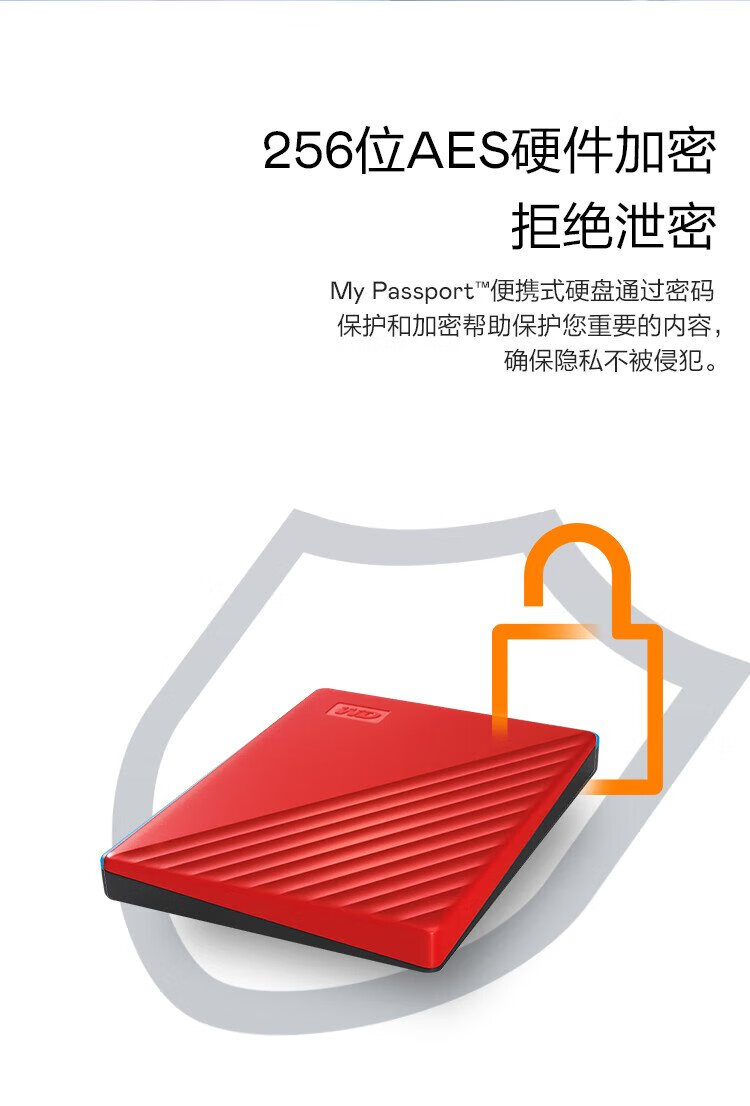 Western Digital (WD) Mobile Hard Drive USB3.0 My Passport Series 2.5-inch Mechanical Hard Drive Mobile Phone Laptop External External Storage Office Home Storage China Red (Hardware Encryption) 2TB