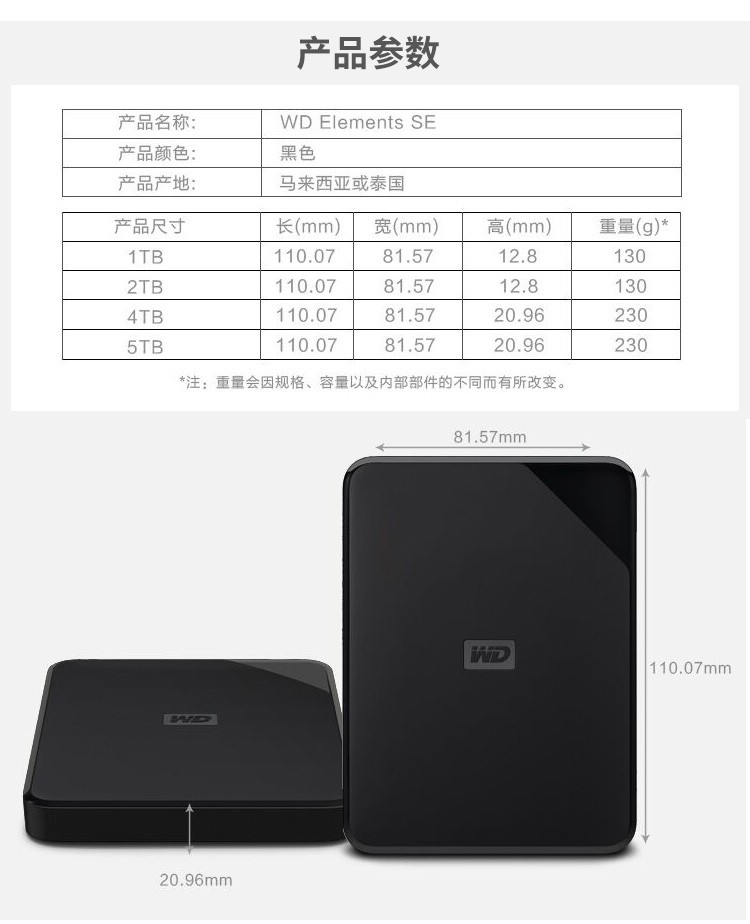 Western Digital (WD) USB3.0 mobile hard drive Elements SE 2.5-inch new element standard delivery package 5TB (WDBJRT0050BBK)