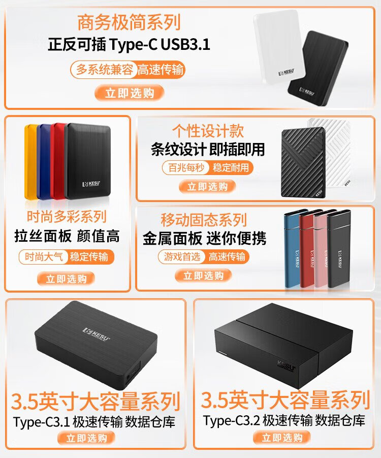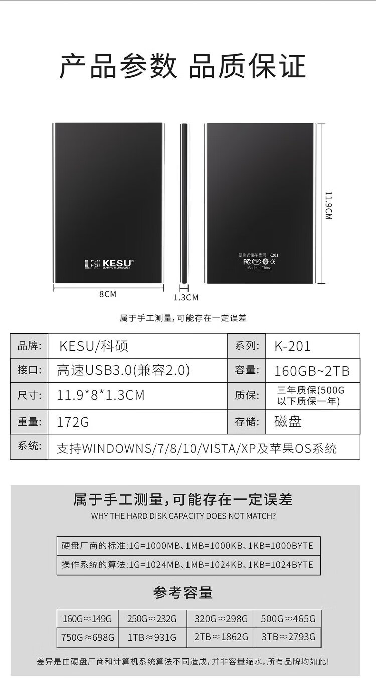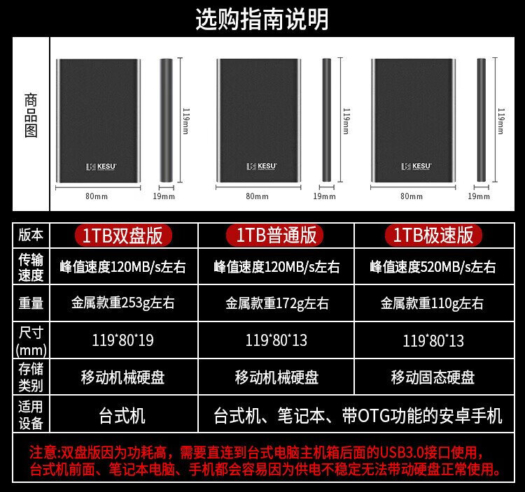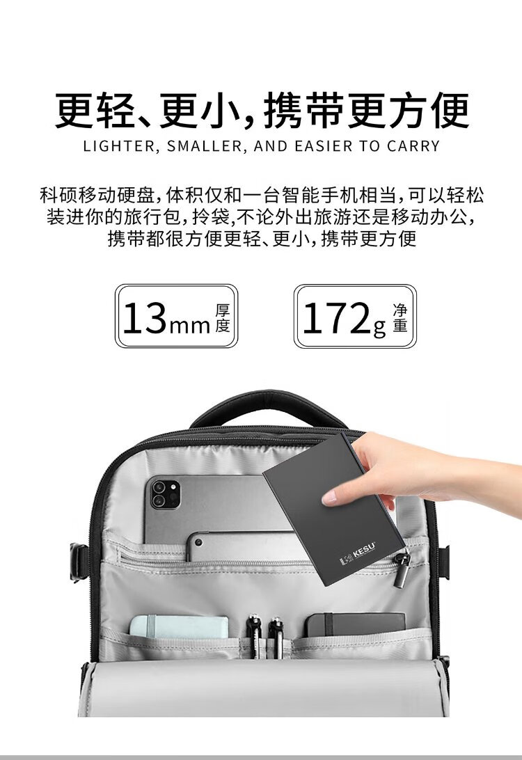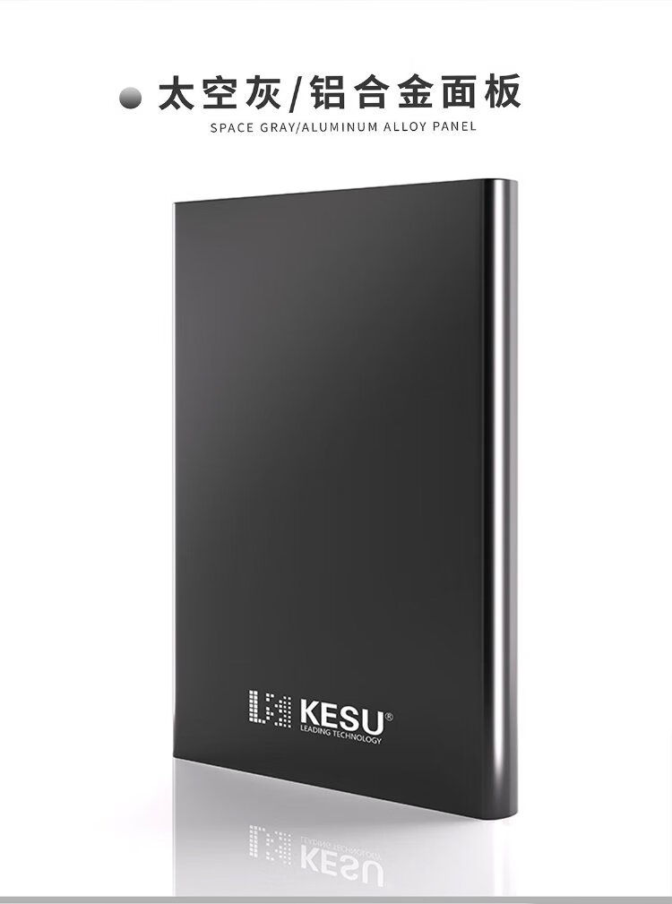 KESU mobile Festplatte, USB3.0-Sicherheitsverschlüsselung, 2,5-Zoll-Hochgeschwindigkeits-Laptop und Mobiltelefon, externe mechanische Festplatte, Edelmetall – Space Grau + Festplatte, stoßfeste Tasche, 1 TB