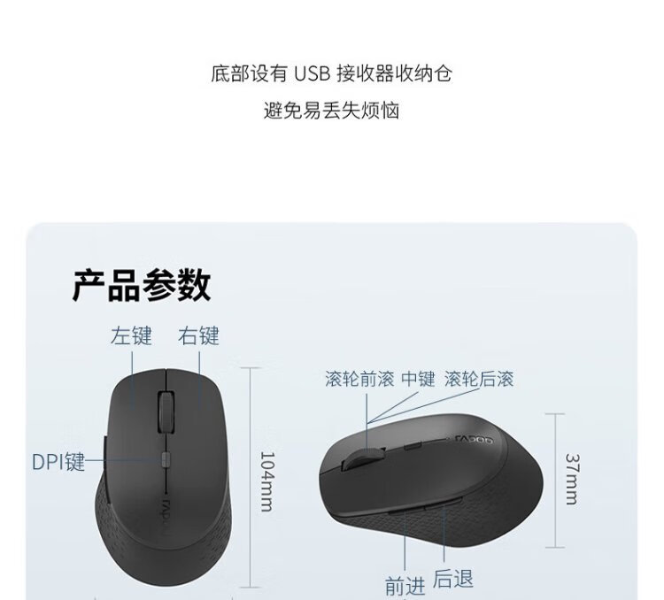 雷柏(Rapoo) M300G 无线蓝牙鼠标 办公鼠标 轻音鼠标 便携鼠标 人体工程学 电脑鼠标 笔记本鼠标 深灰色