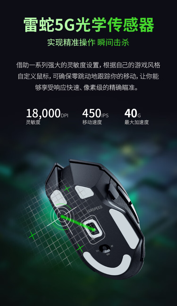雷蛇(Razer)巴塞利斯蛇V3 X极速版 无线鼠标 小巴蛇 RGB幻彩灯效 吃鸡/LOL/CS GO电竞游戏鼠标