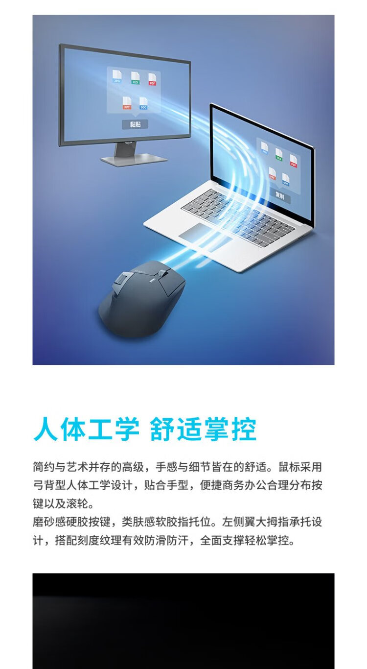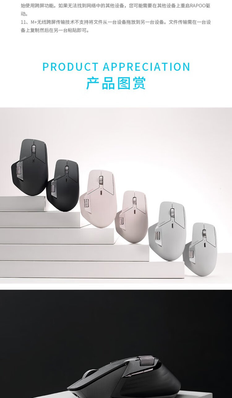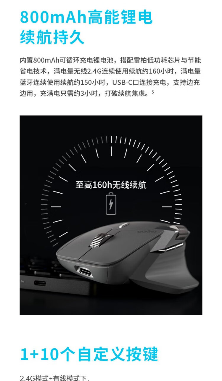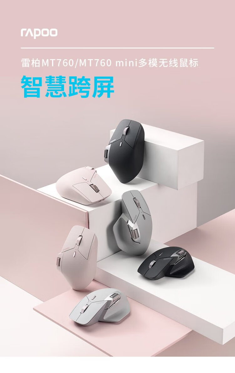 雷柏(Rapoo) MT760大手无线/蓝牙/有线多模办公鼠标 跨屏传输人体工学轻音按键11键可定义150小时续航 黑色