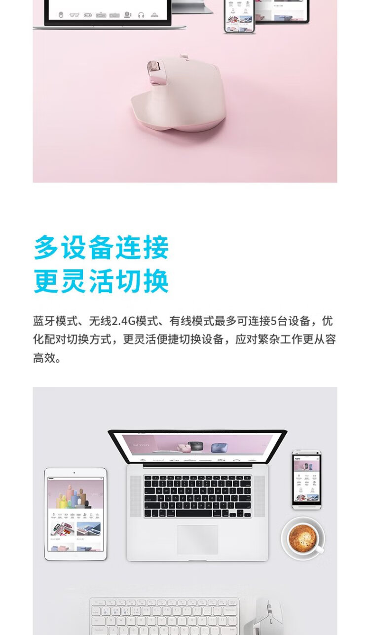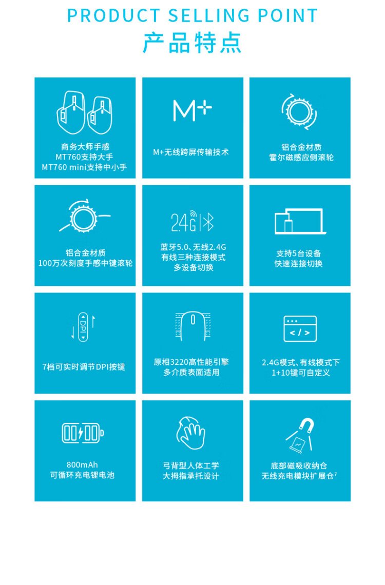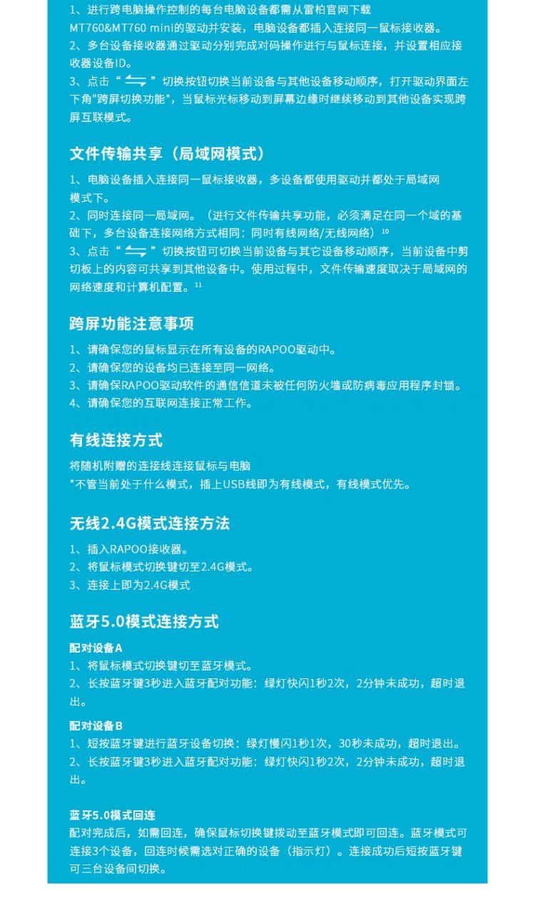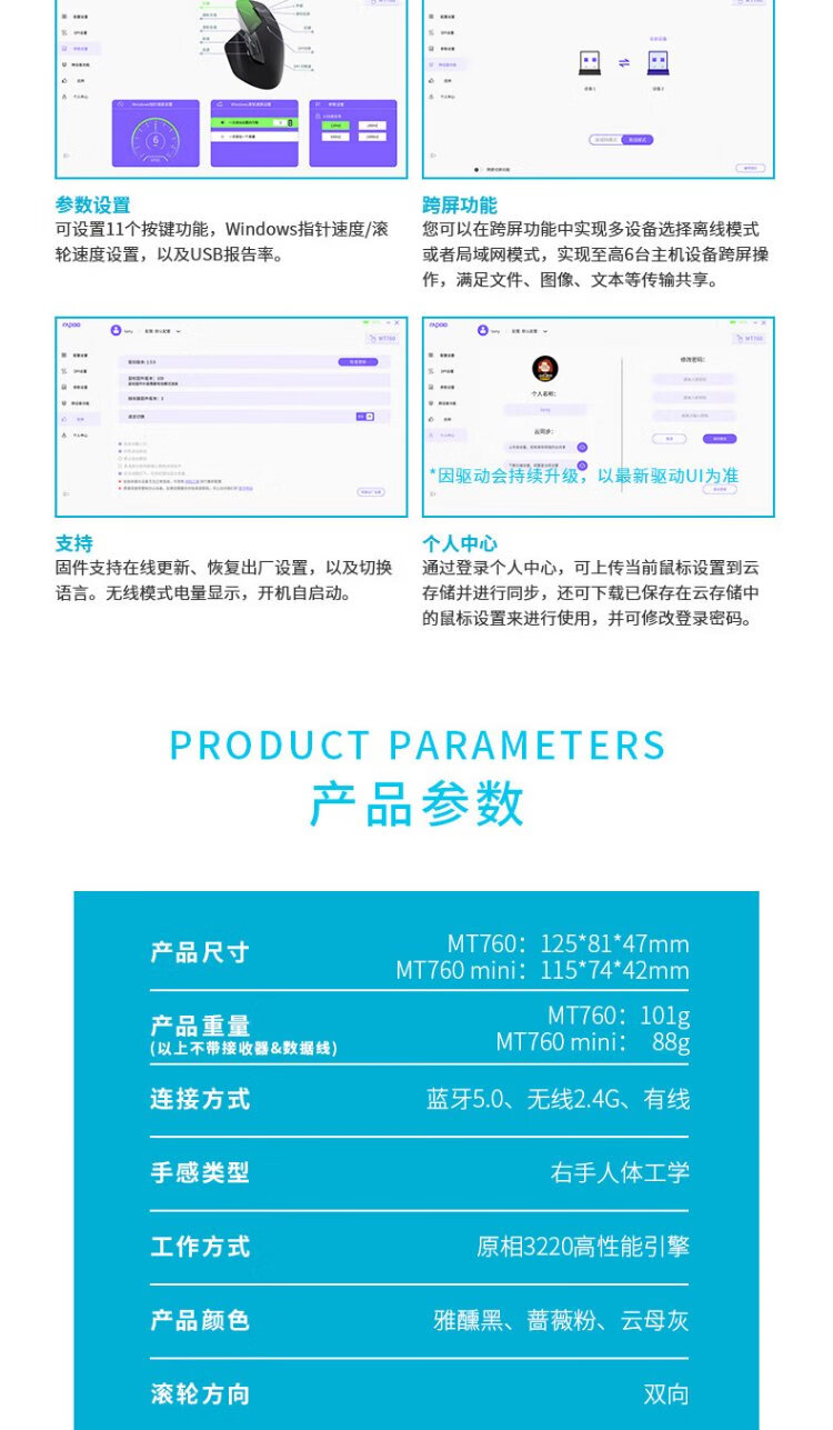 雷柏(Rapoo) MT760大手无线/蓝牙/有线多模办公鼠标 跨屏传输人体工学轻音按键11键可定义150小时续航 黑色