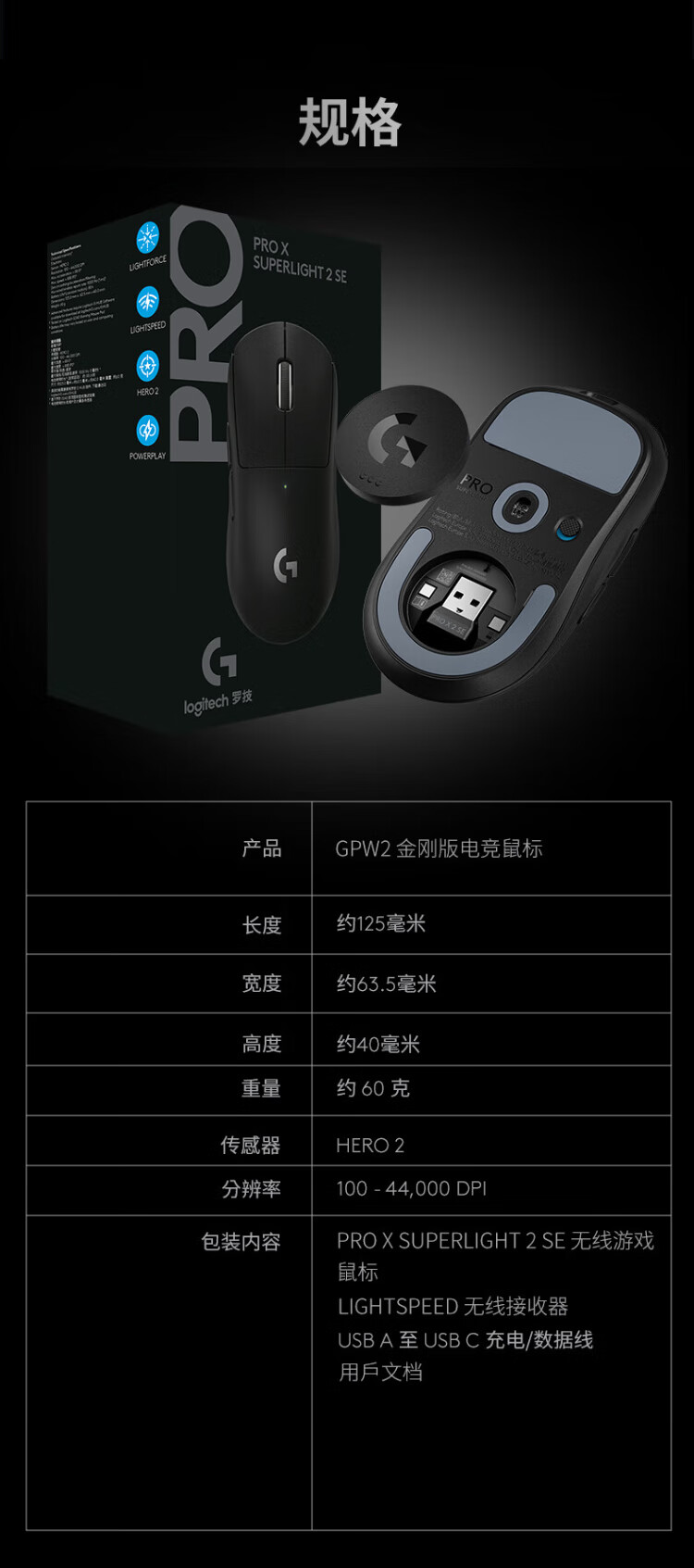 罗技(G)GPW二代 金刚版新升级 无线游戏鼠标 Hero2传感器 60g轻量 FPS职业电竞配置 GPW2狗屁王二代 黑色