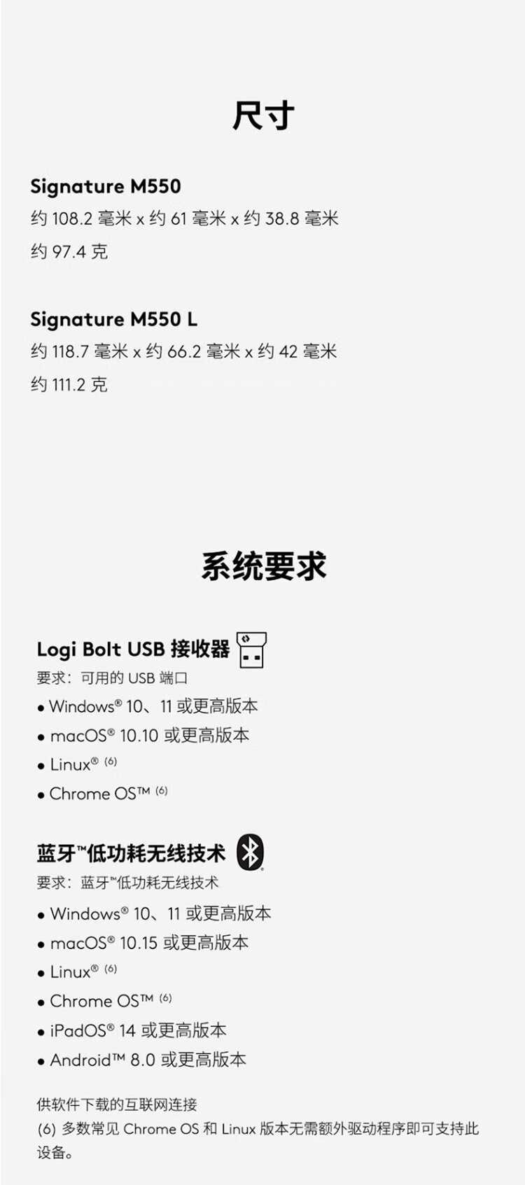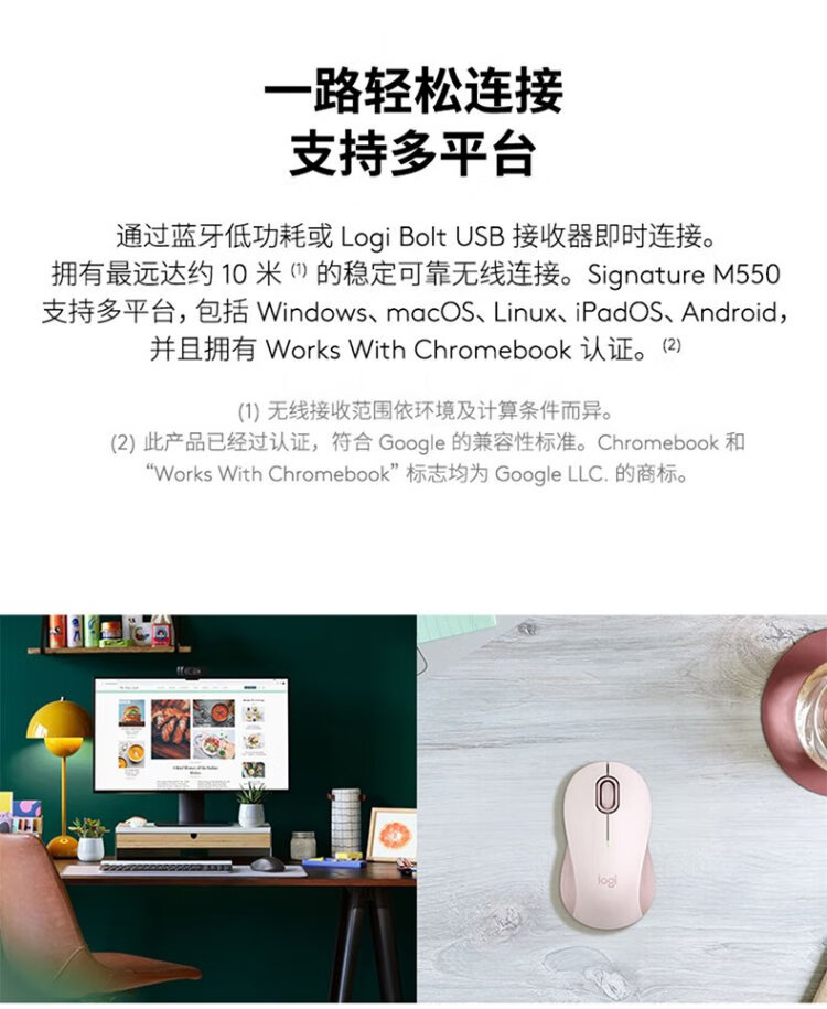 罗技(Logitech)优选系列M550(M650同款造型)无线蓝牙鼠标 商务家用办公轻音 便携笔记本台式机电脑鼠标 黑色