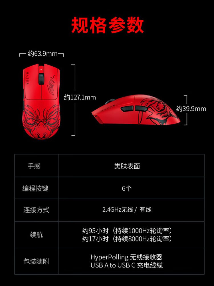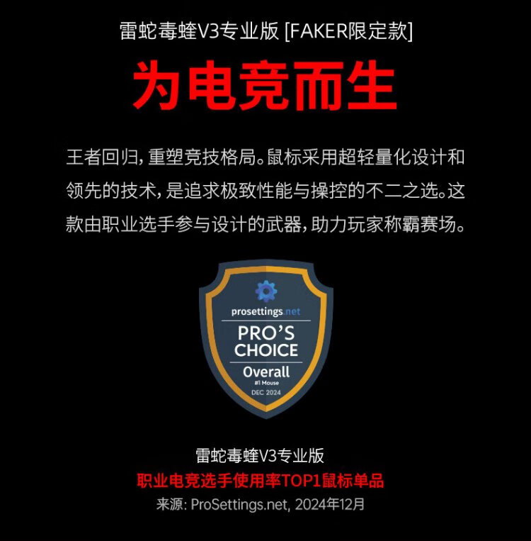 雷蛇(Razer)毒蝰V3pro专业版 Faker联名限定款 无线鼠标 8K 电竞游戏轻量化 冠军同款 Viper V3pro