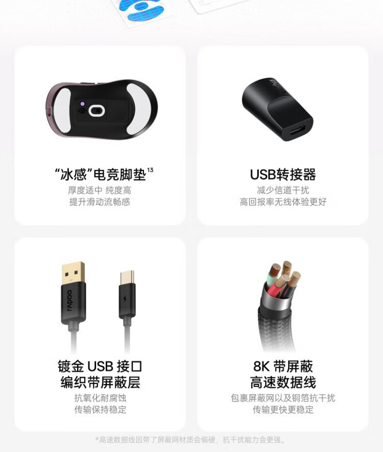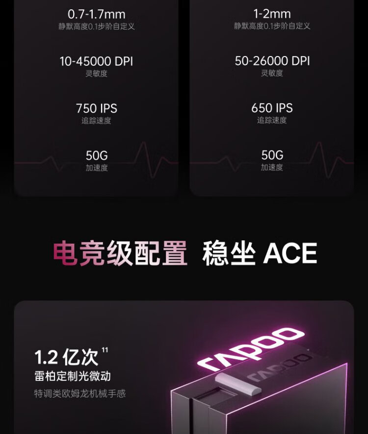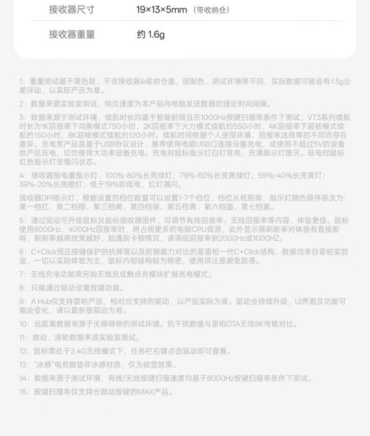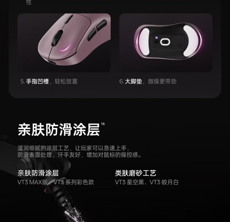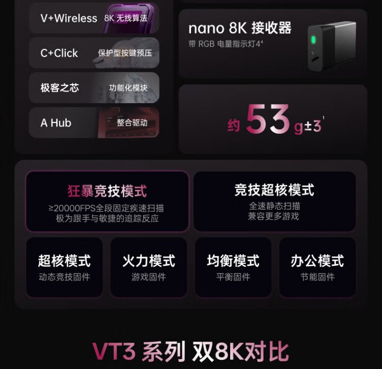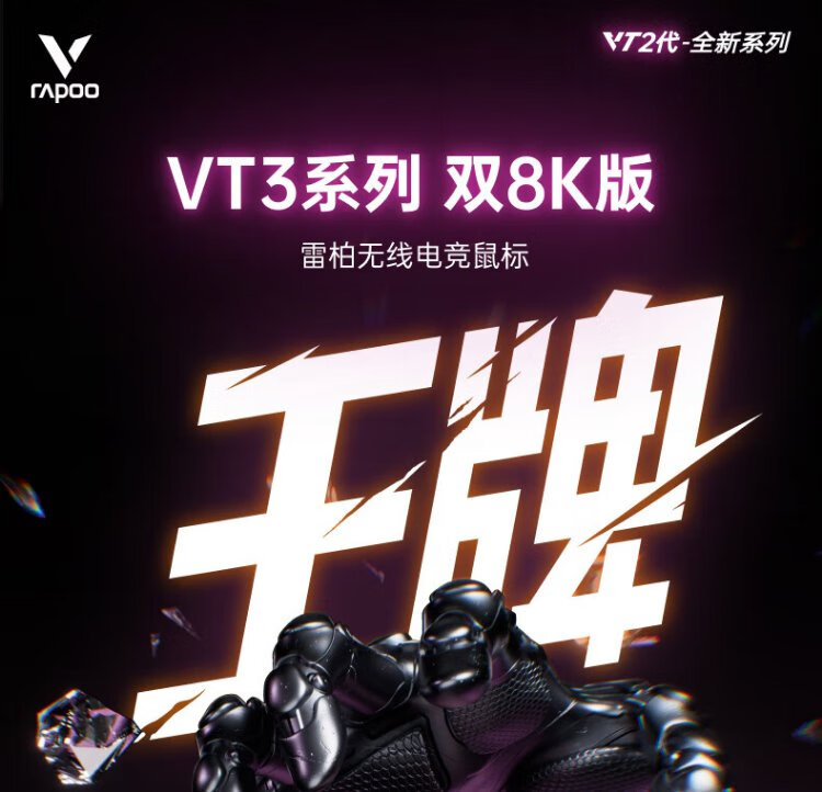 Rapoo VT3 second generation dual 8K version, wireless/wired dual-mode gaming mouse for medium and large hands, lightweight design, original 3398 engine, native 8K+8K rate of return, black