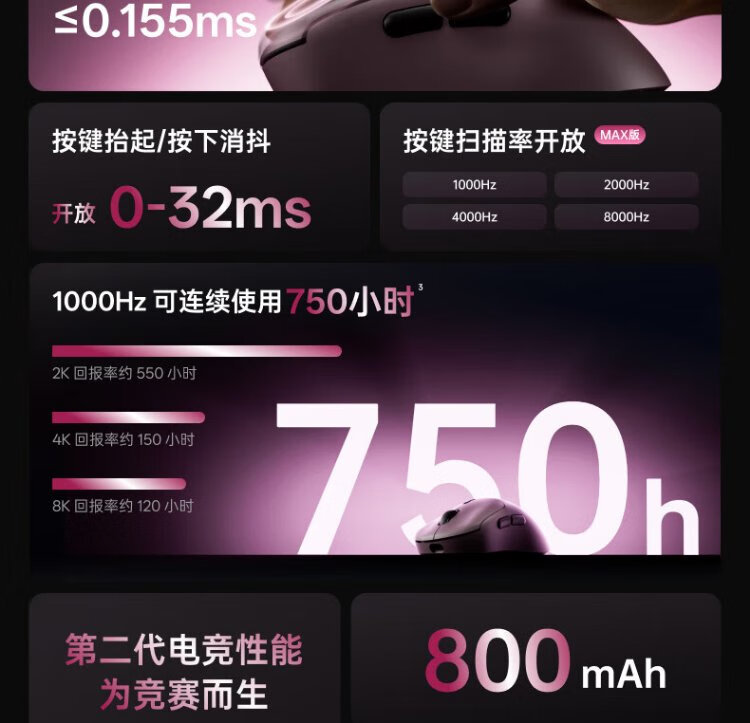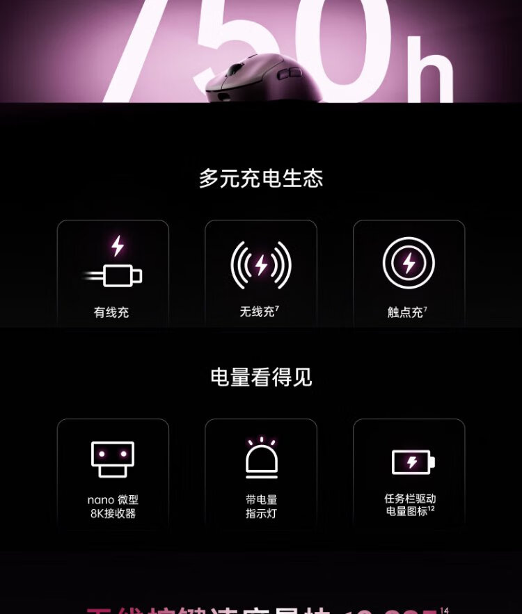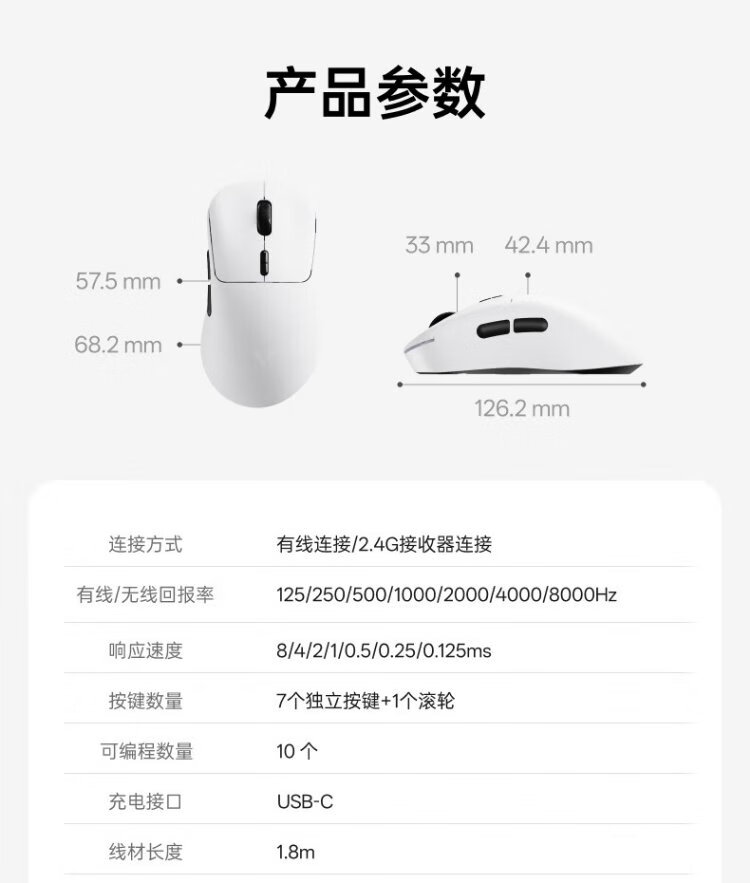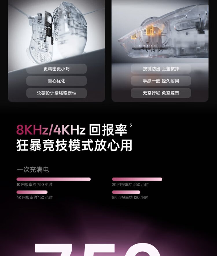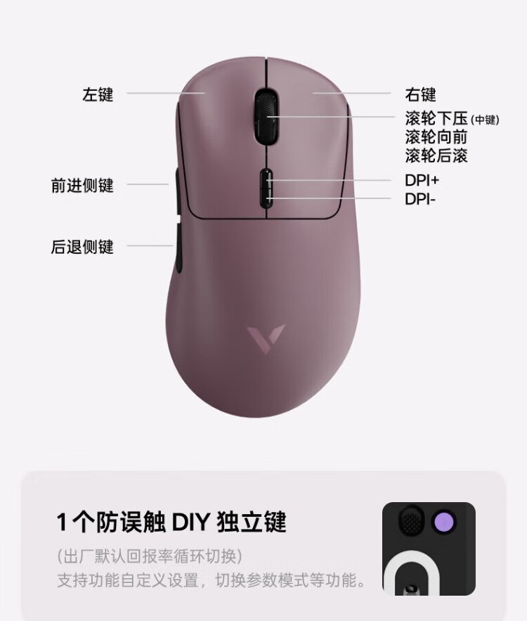 Rapoo VT3 second generation dual 8K version, wireless/wired dual-mode gaming mouse for medium and large hands, lightweight design, original 3398 engine, native 8K+8K rate of return, black