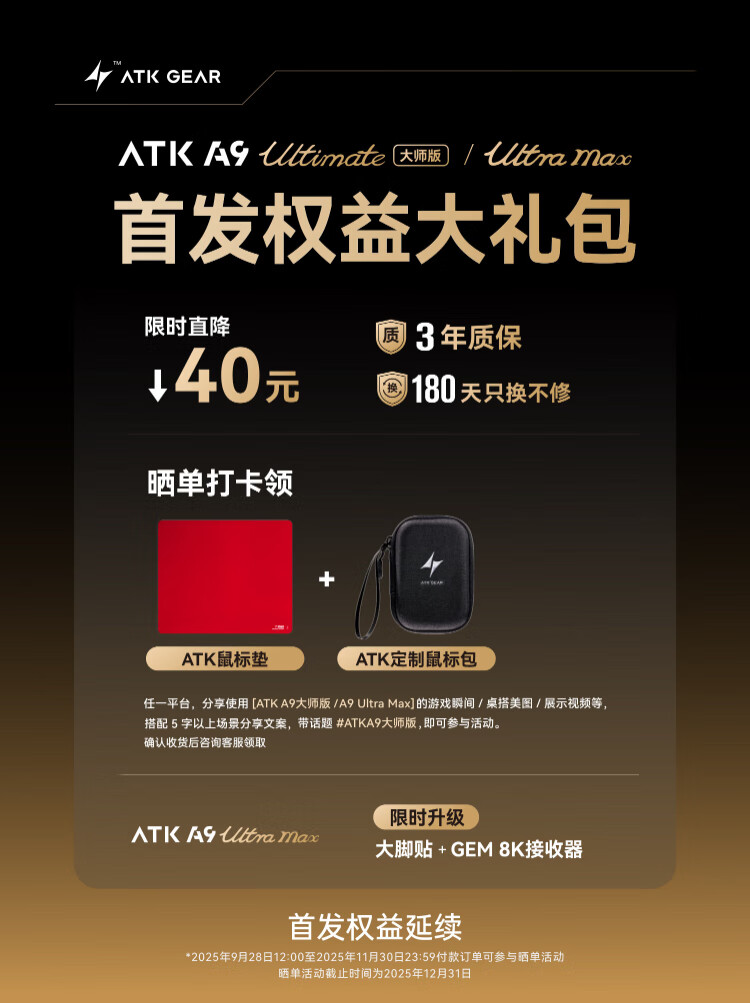 ATK蜻蜓A9无线鼠标电竞游戏办公鼠标 有线/2.4G双模连接轻量化对称极简工学 A9UltraMax白色