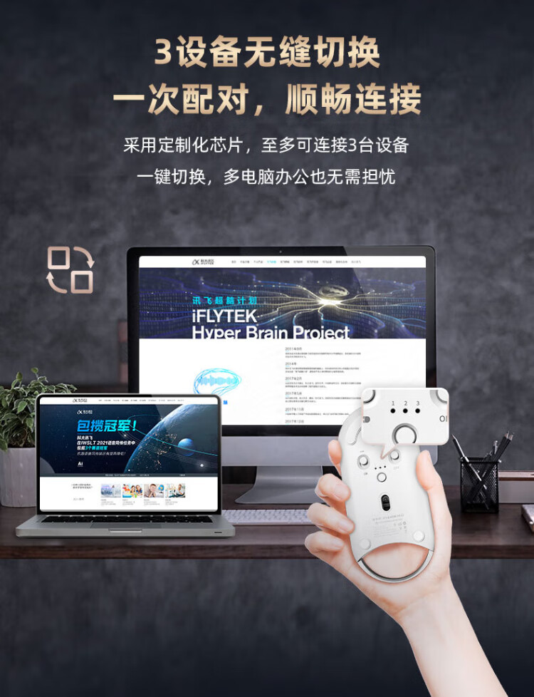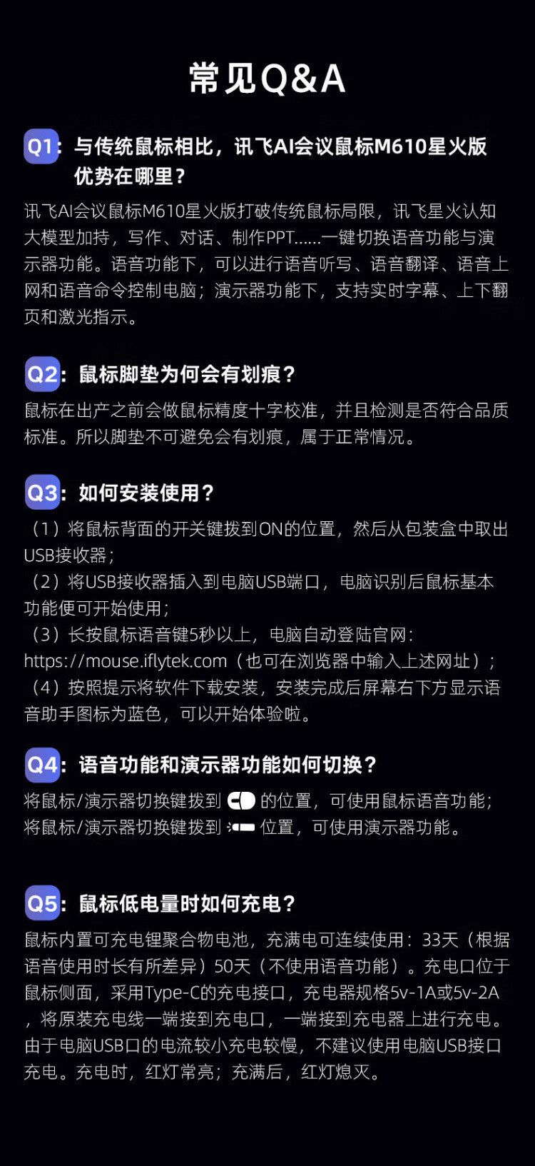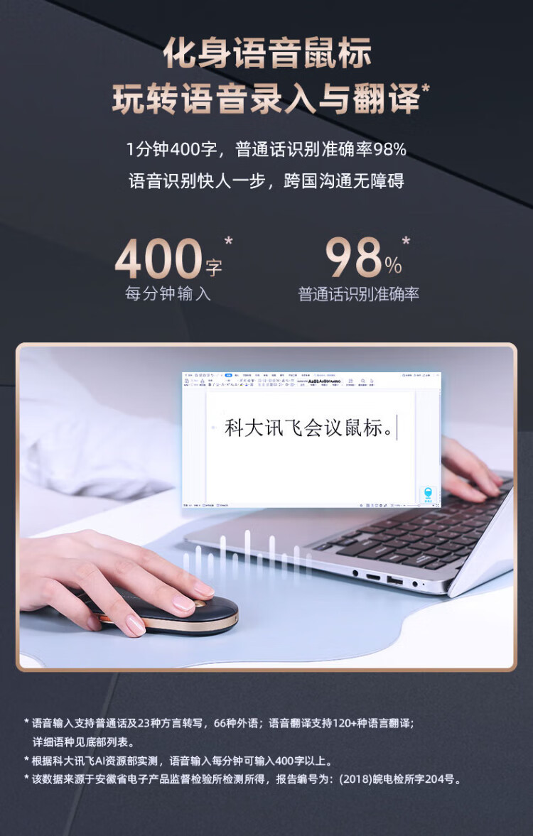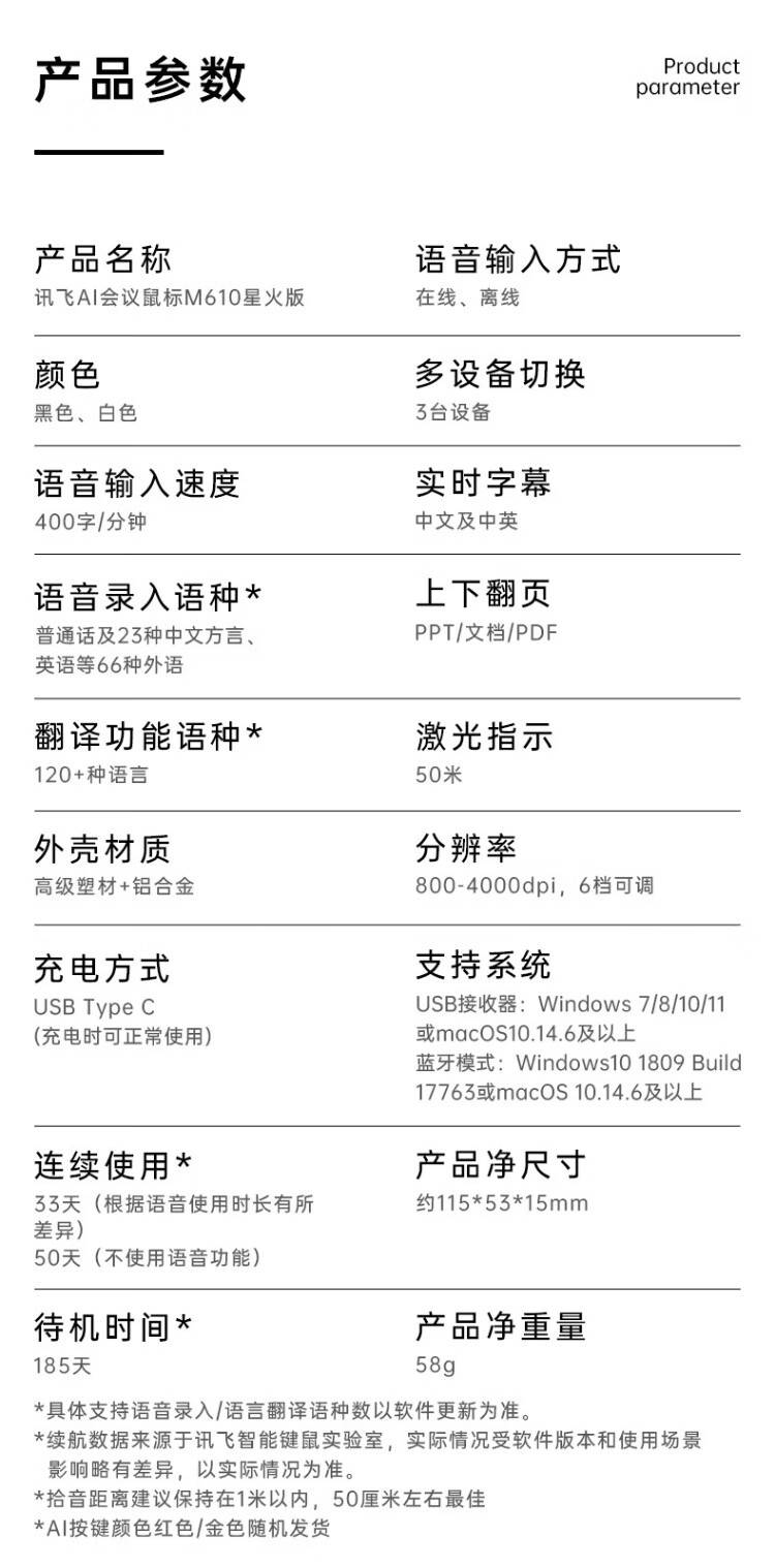 科大讯飞智能AI会议鼠标M610星火版 演示器语音识别语音打字 无线蓝牙鼠标 可充电式 智能PPT AI写作 【AI会议鼠标M610星火版】皓月白