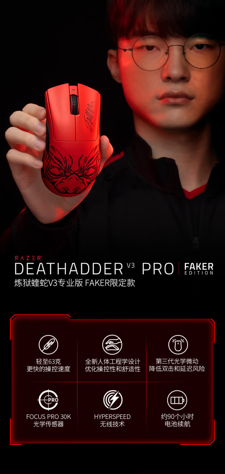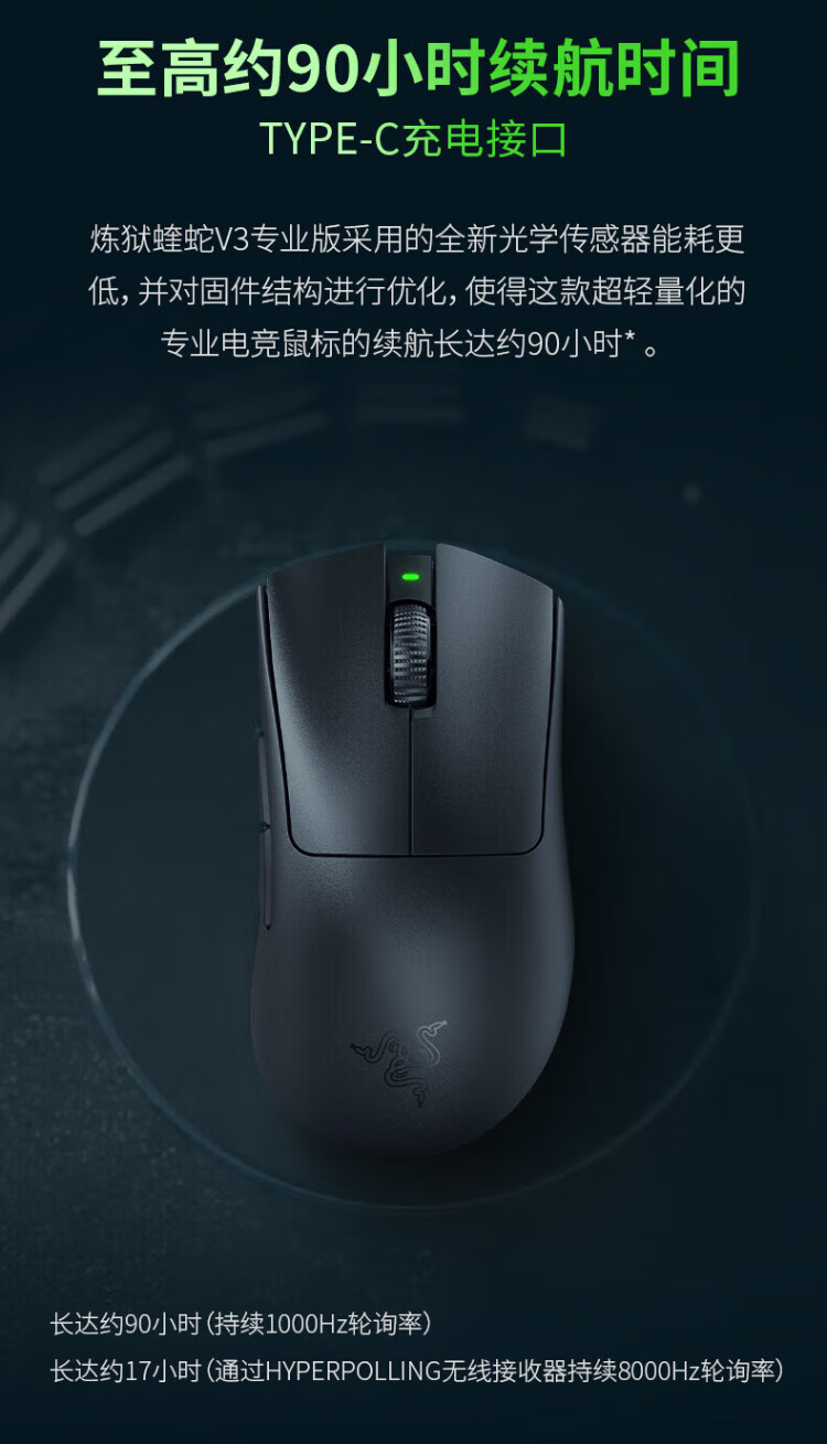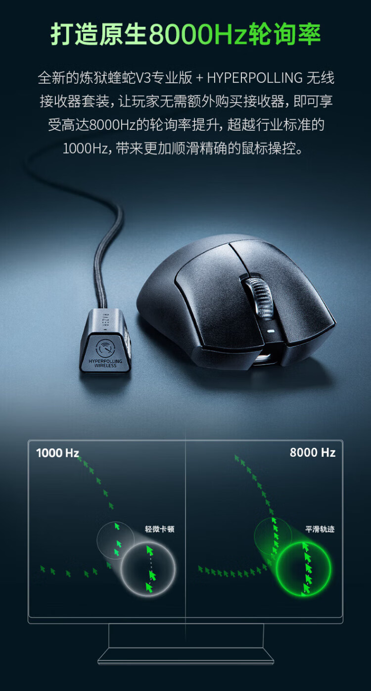 Razer Viper v3pro professionelle Version, kabellose 2,4-G-E-Sport-Gaming-Maus, leichte Maus, ergonomische, rückenvergrößernde Hühnermaus, Viper V3Pro+ kabelloser Empfänger, hautähnliche Maus, 8K-Empfänger