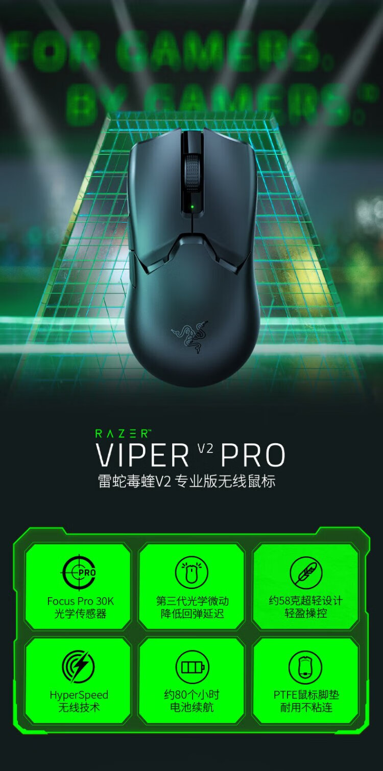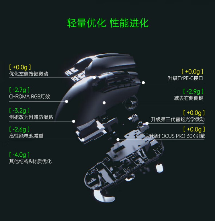 雷蛇(Razer) 毒蝰v2pro专业版 轻量化无线游戏鼠标 宏电竞鼠标  对称手型 lol吃鸡鼠标 【第三代光学微动】毒蝰V2专业版白色