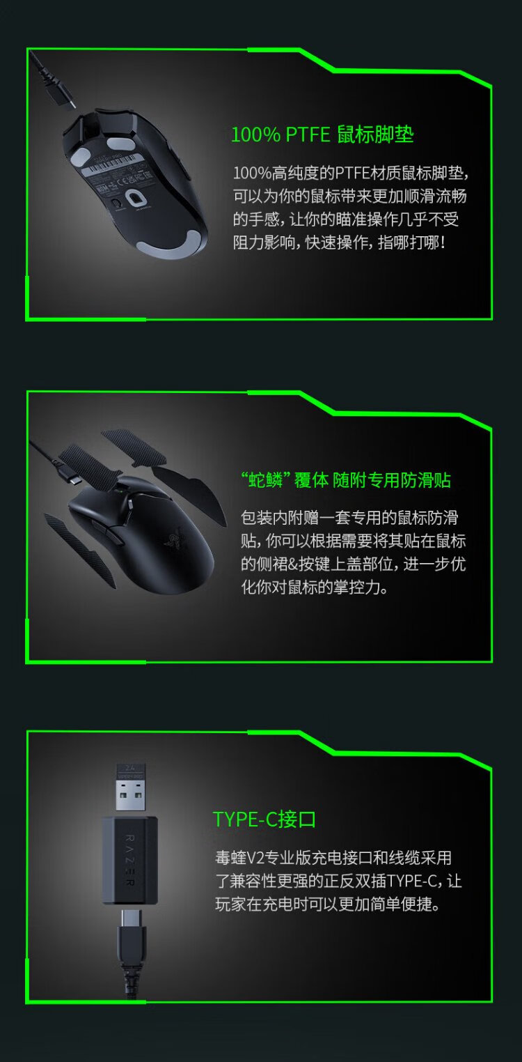 雷蛇(Razer) 毒蝰v2pro专业版 轻量化无线游戏鼠标 宏电竞鼠标 对称手型 lol吃鸡鼠标 【第三代光学微动】毒蝰V2专业版白色