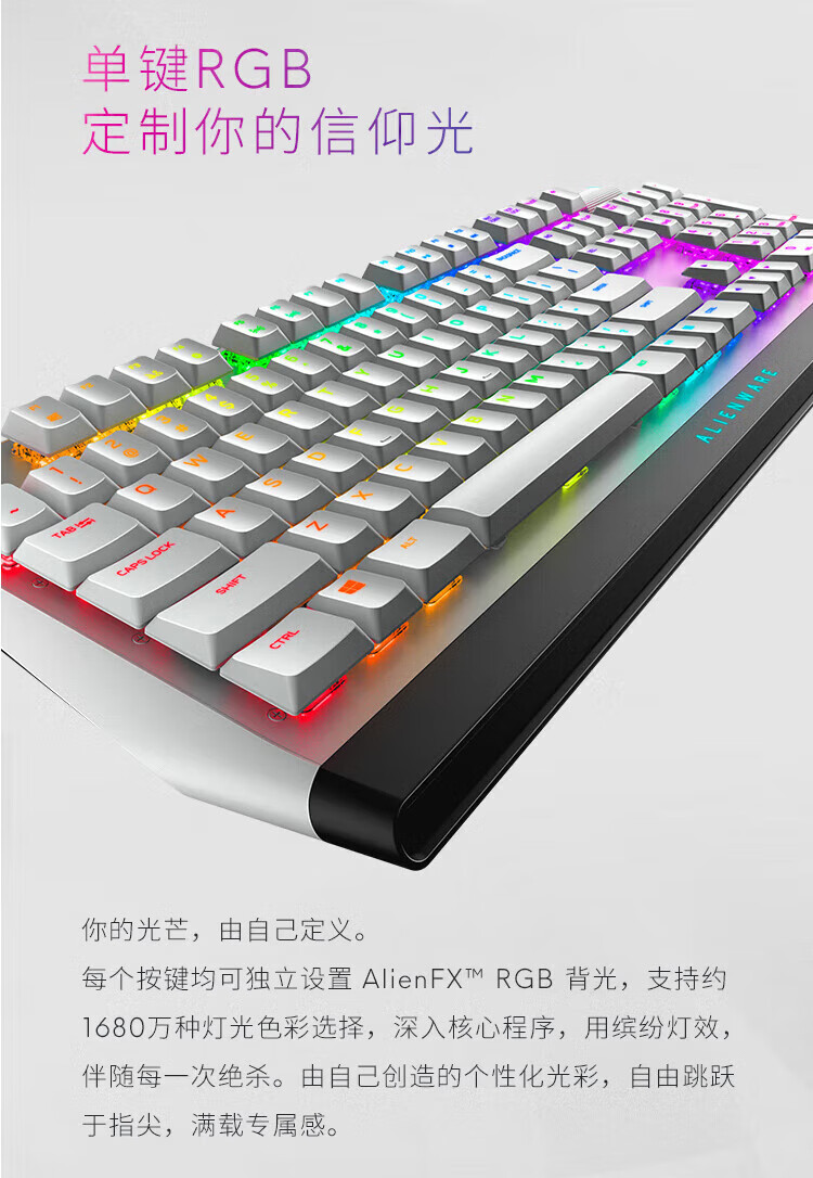 外星人(Alienware)610M+510K+520H游戏电竞三件套(无线游戏鼠标有线机械键盘电竞耳机)RGB高端外设送礼物白色 【竞技两件套】610M+红轴键盘/黑