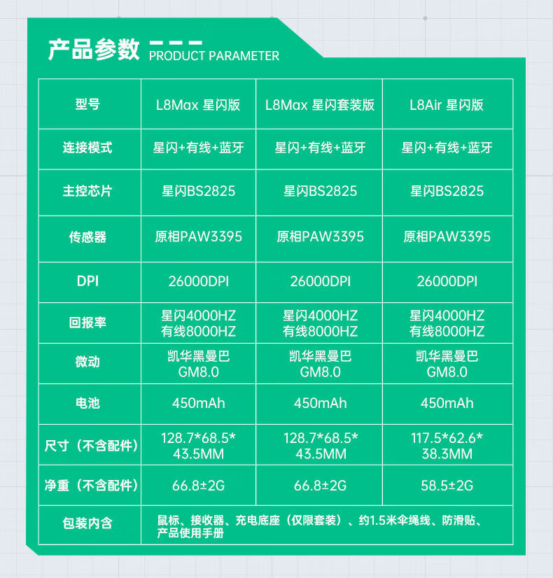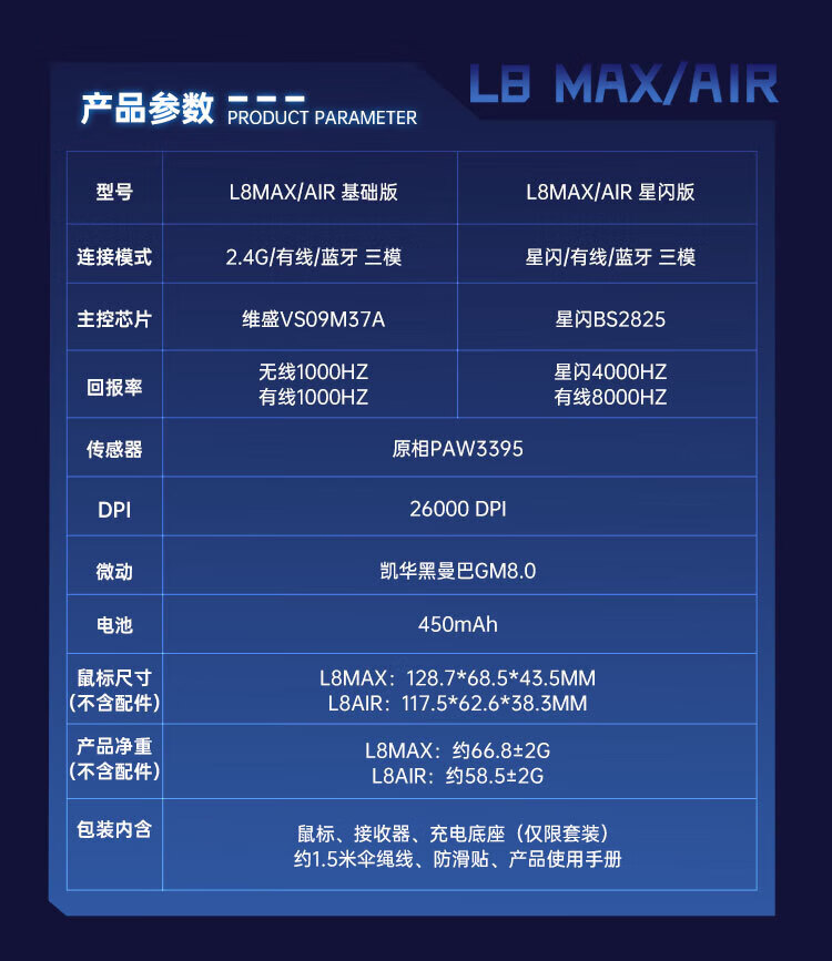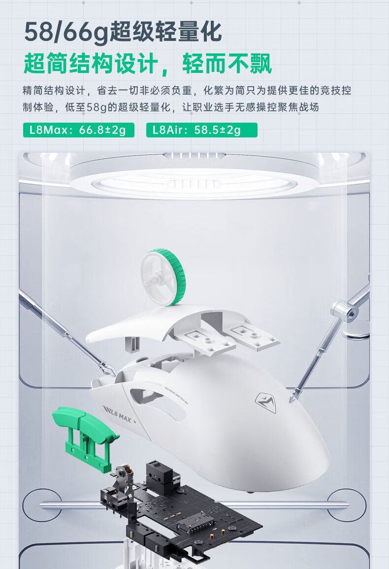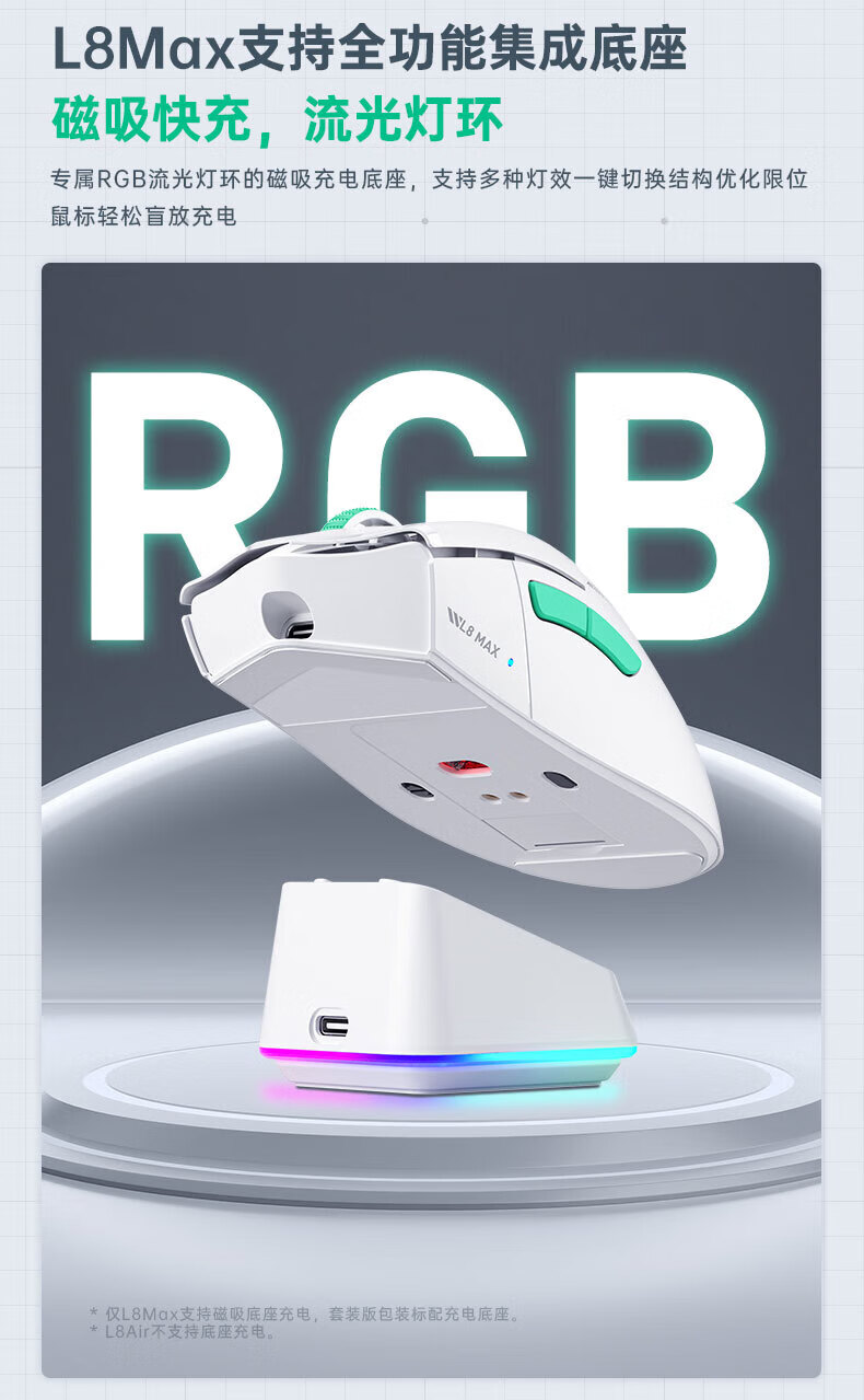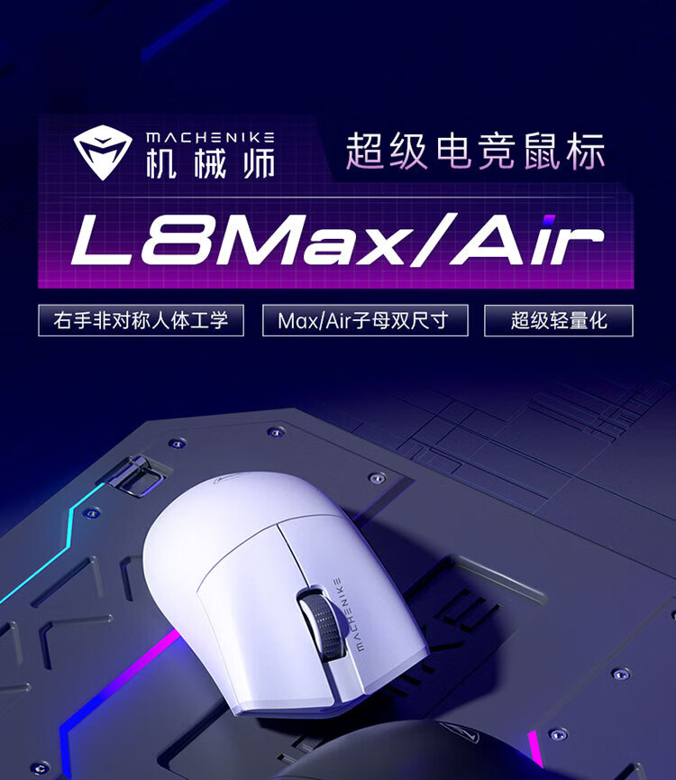 MACHENIKE L8Max Air Star Flash Mouse Wireless Bluetooth Three-Mode Gaming Mouse Wired/Star Flash/Bluetooth Lightweight 66g E-Sports Gaming Computer Office Notebook Mouse L8Max Set Version Three-Mode Mouse-Black