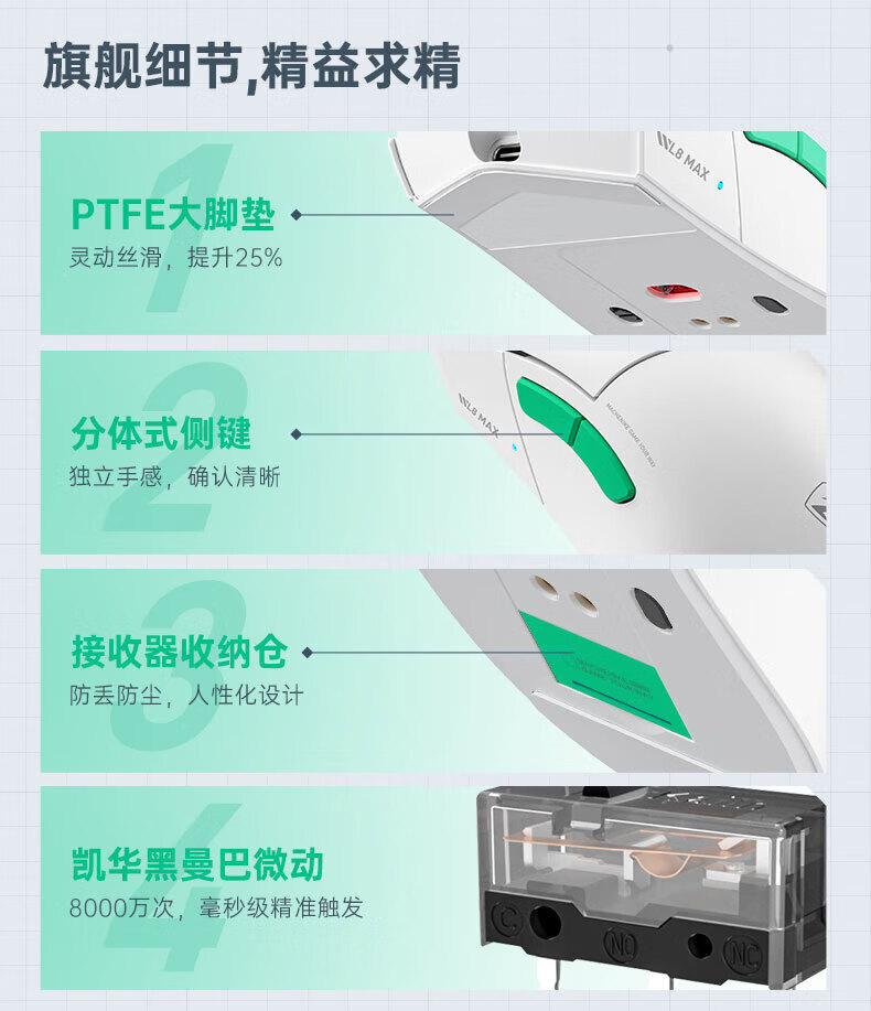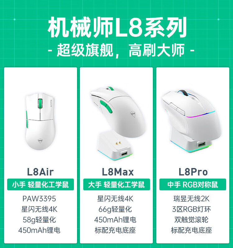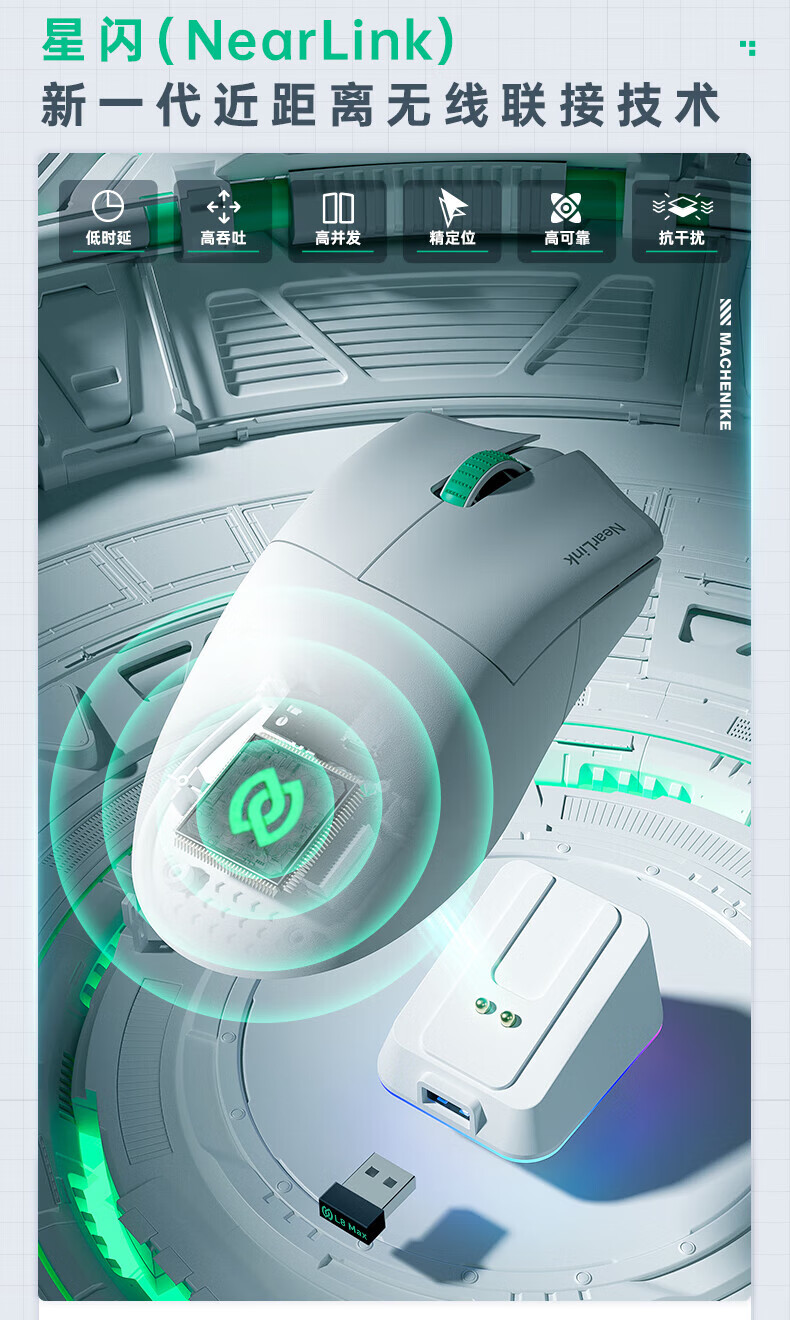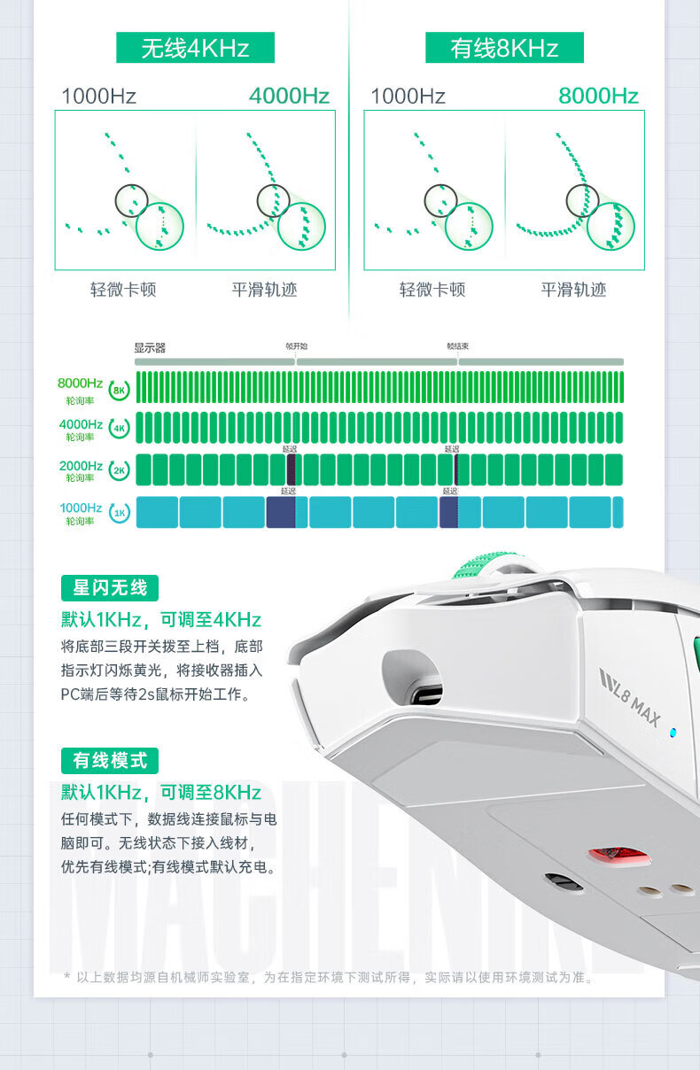 MACHENIKE L8Max Air Star Flash Mouse Wireless Bluetooth Three-Mode Gaming Mouse Wired/Star Flash/Bluetooth Lightweight 66g E-Sports Gaming Computer Office Notebook Mouse L8Max Set Version Three-Mode Mouse-Black