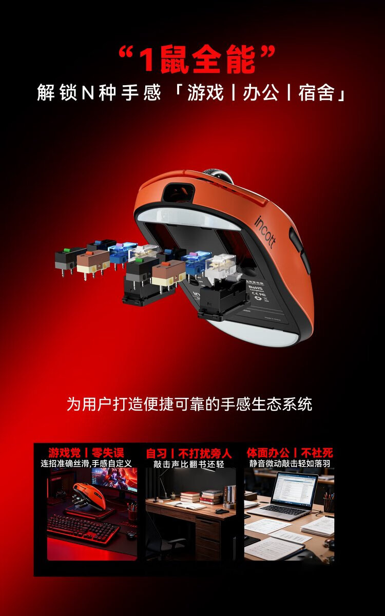 Nuevo producto debut de Incote G23 V2 ratón de micromovimiento intercambiable en caliente deportes electrónicos juegos oficina con cable inalámbrico Bluetooth tres modos 8K ligero mano grande PAW3950/3395 batería de larga duración G23Pro positivo rojo 3950 intercambiable en caliente + firmware competitivo alfombrilla de ratón sin firmware
