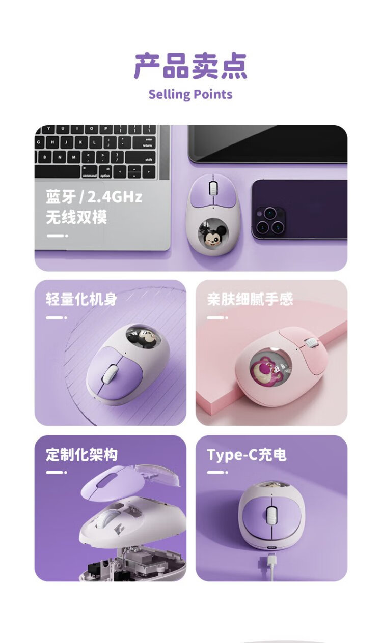 Ratón Bluetooth inalámbrico Disney (DISNEY) para niñas, modo dual compacto, recargable, oficina ergonómica, silencioso, atractivo, sensación cómoda, adecuado para computadoras portátiles, iPads, tabletas, sonido ligero, Judy-Blue, modo dual Bluetooth/batería de duración ultralarga/sensación cómoda