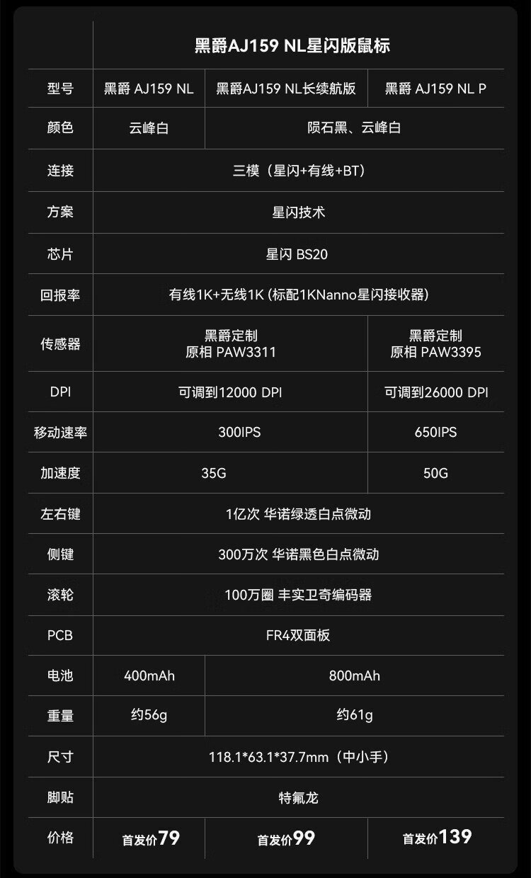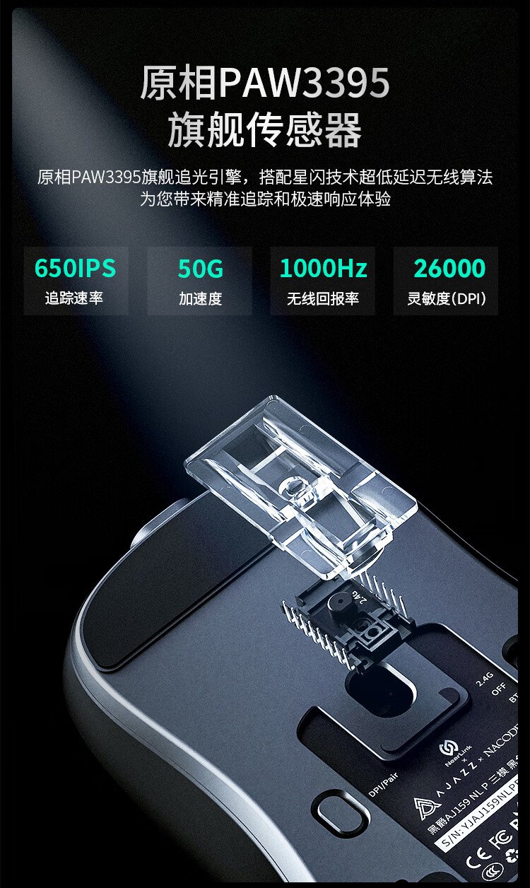 Heijue 15% off your order AJ159APEX three-mode gaming mouse Star Flash lightweight original phase PAW3395/PAW3311 without holes supports 8K return rate magnetic charging base AJ159 Star Flash black three-mode 800mAh-PAW3395 official standard
