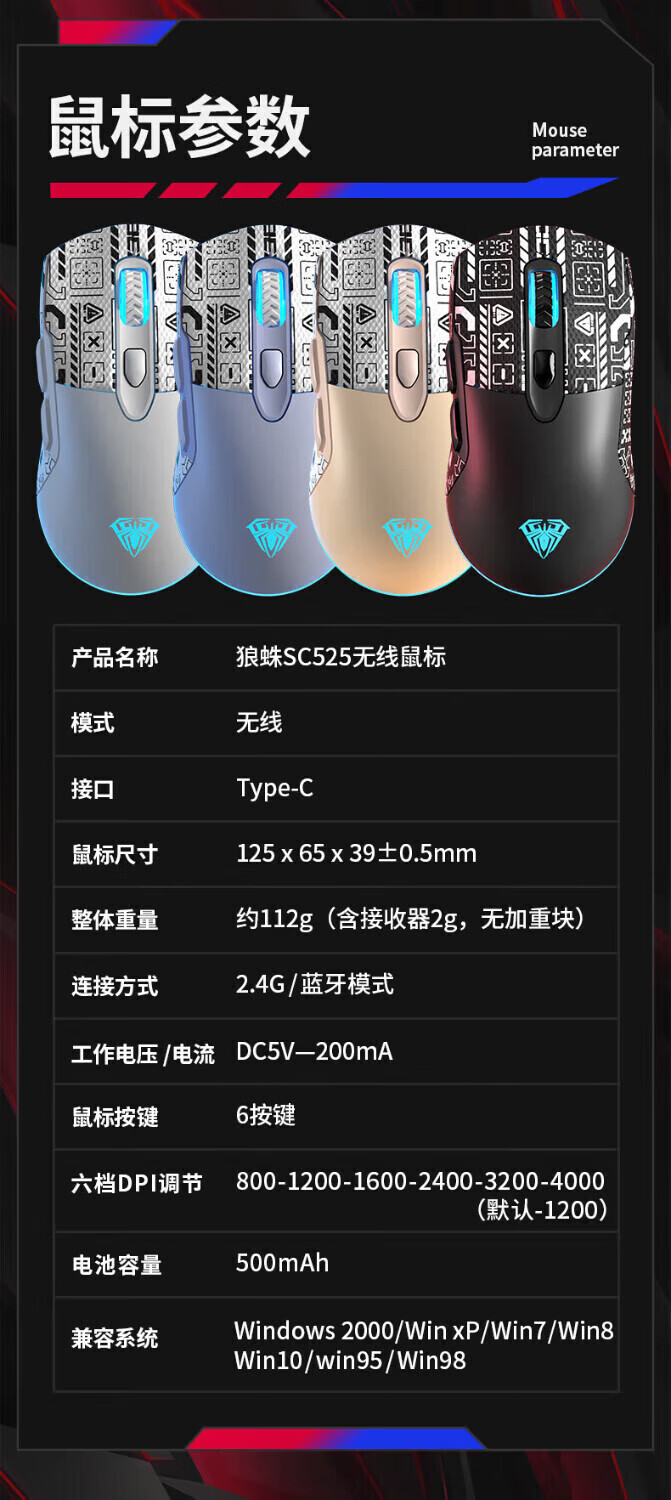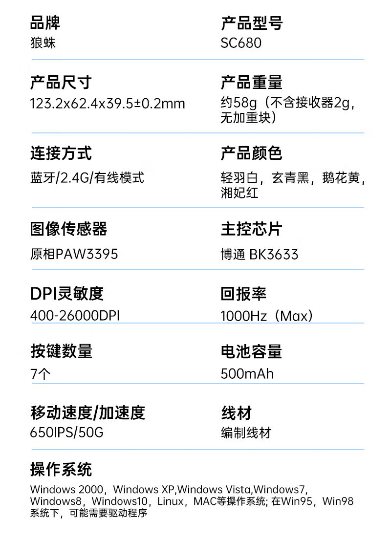 狼蛛(AULA)SC580/SC680三模游戏鼠标无线有线蓝牙轻量化鼠标10000DPI 电竞办公游戏鼠标 【新旗舰】三模-SC680粉色-无线8K 无规格