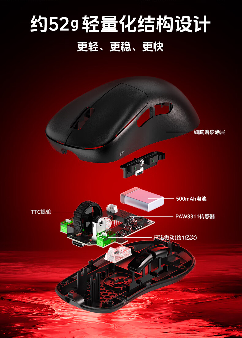 飞利浦(PHILIPS)猎装者F1无线鼠标游戏电竞鼠标办公鼠标蓝牙三模52g轻量化人体工学手感舒适cs2使命召唤WF13B 【PAW3311】猎装者F1 白色