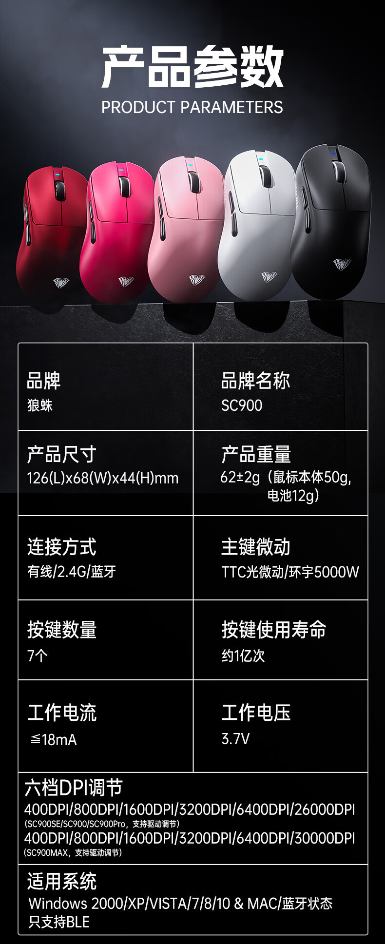 Die Wolf Spider (AULA) SC900-Maus verfügt über einen austauschbaren Akku und ist leicht, Gaming, Büro-E-Sport, kabelgebundene/2,4G/Bluetooth-Dreimodusverbindung, originaler PAW3950/3395-Chip, bis zu zwei 8K-Rückgaben, SC900MAX-weiß, zwei Batterien