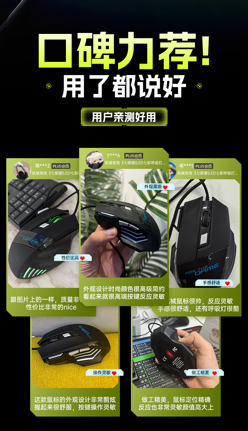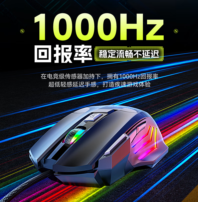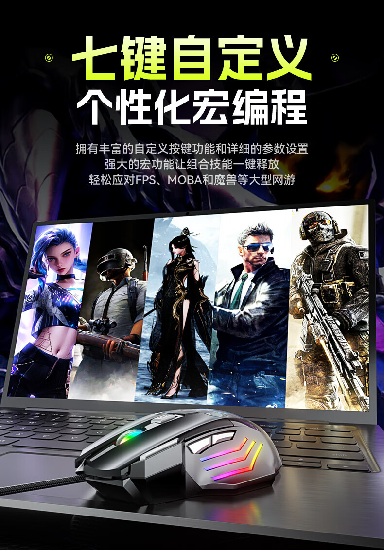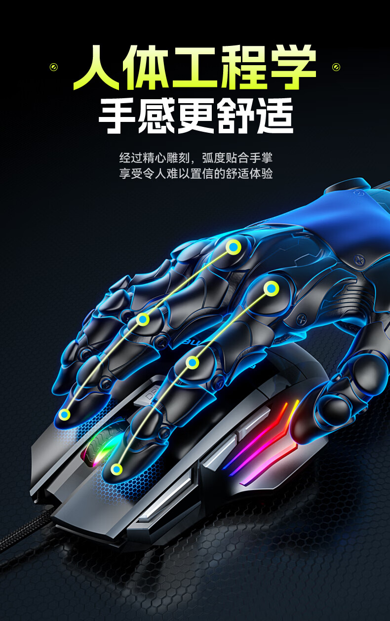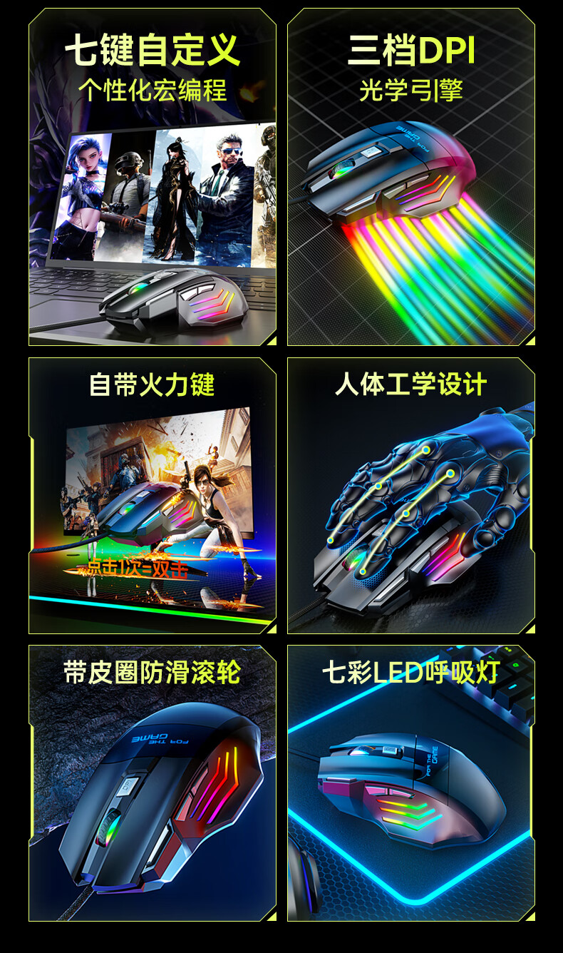 SUOYING【TOP榜第一名】鼠标有无线游戏电竞机械专用电脑笔记本办公配件usb台式外接网吧宏编程吃鸡三角洲 机械有线【七按键丨LED七彩呼吸灯丨3档DPI】黑 人体工学+光学引擎+电竞芯片+游戏宏编程