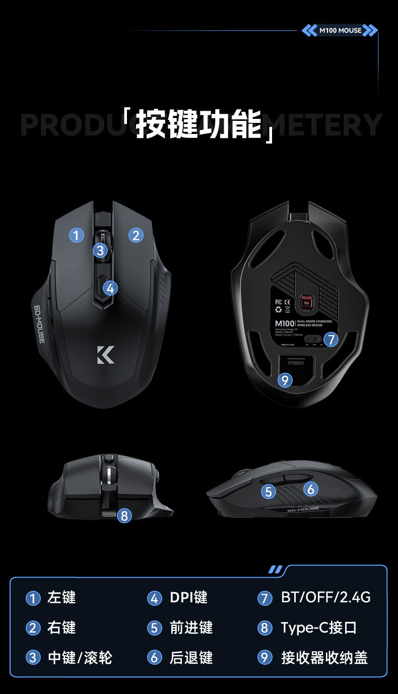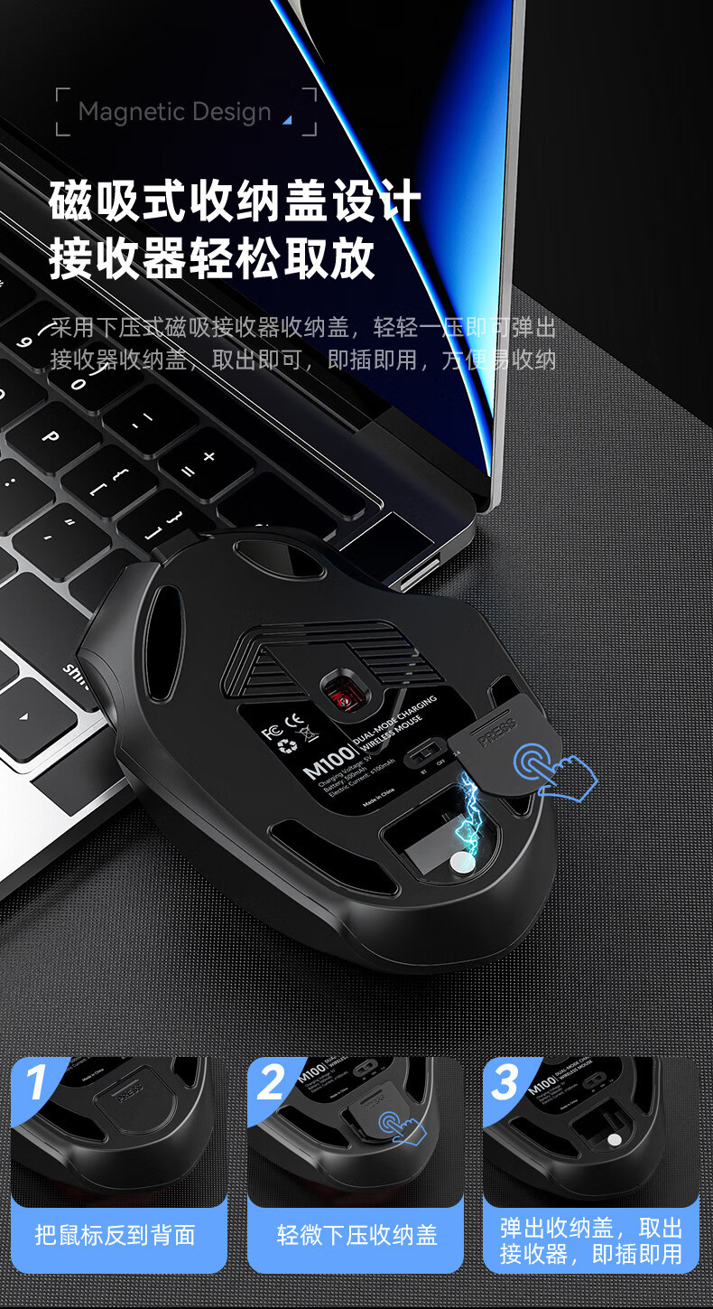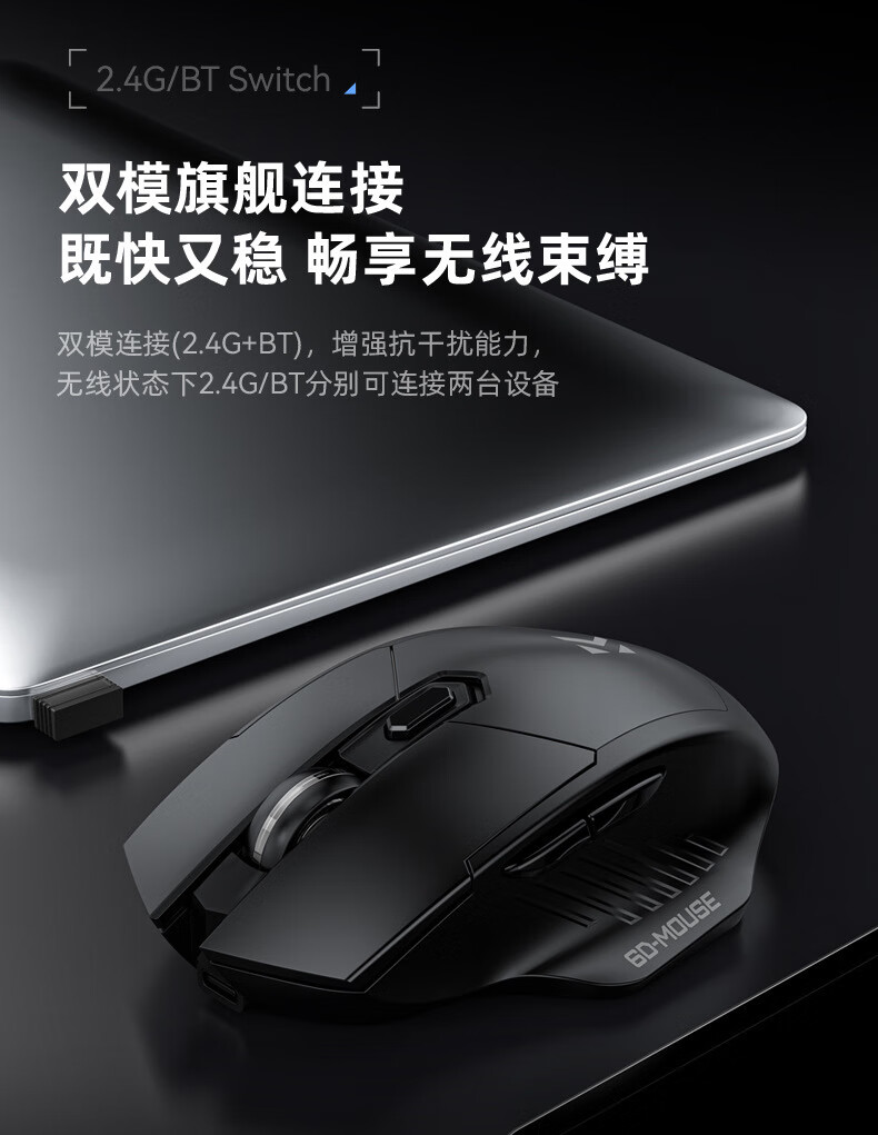 凡赛罗技无线鼠标超静音2025新款可充电蓝牙双模人体工学妙控办公游戏电竞适用于迈从笔记本电脑 旗舰升级款-加强续航+蓝牙双模-黑色