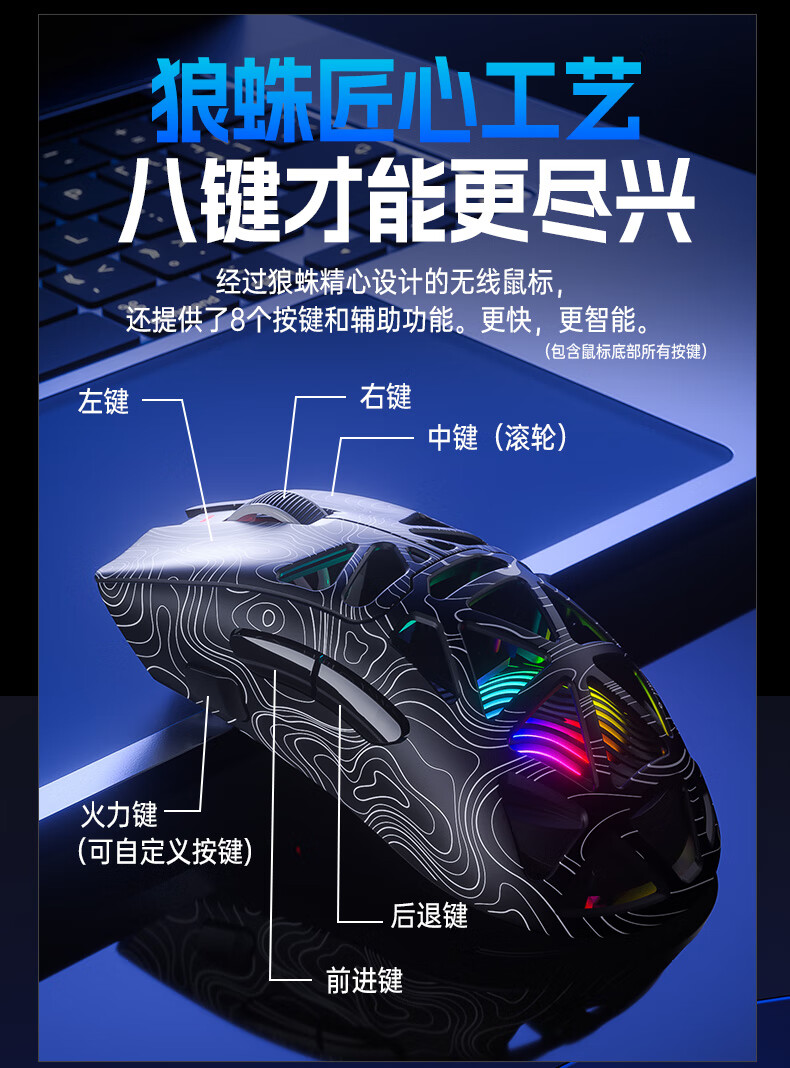 Wolf Spider (AULA) SC620 wireless 2.4G/Bluetooth/wired three-mode hollow mouse e-sports lightweight hollow gaming Bluetooth mechanical desktop notebook universal mouse metal texture titanium cyan-PWA3311