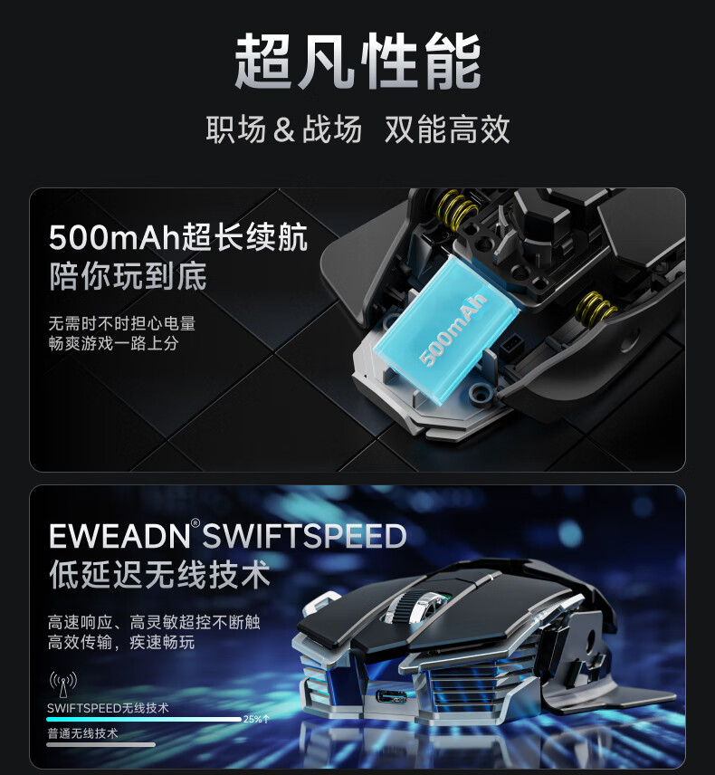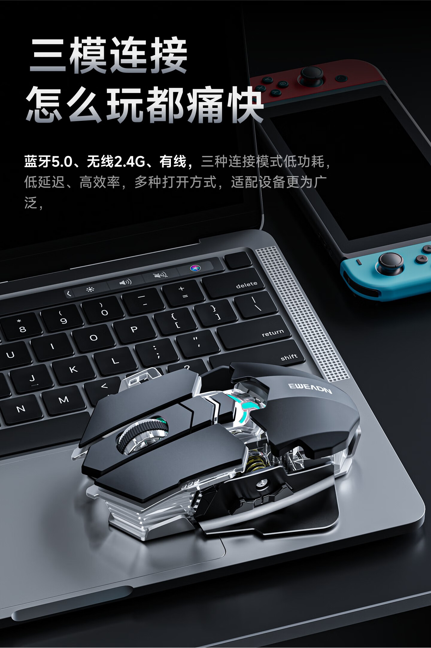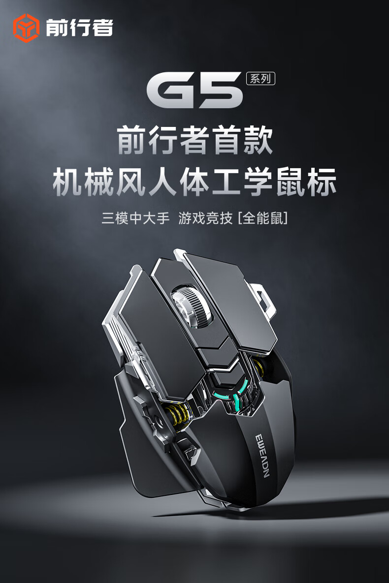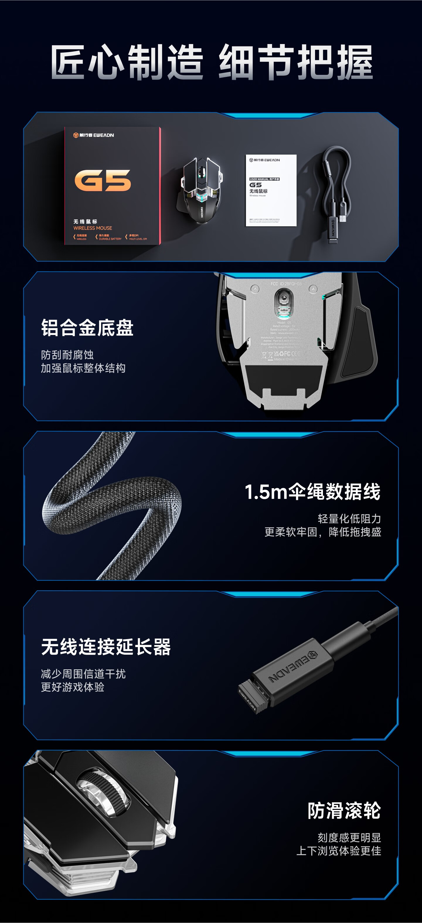 Forerunner (EWEADN) G5 three-mode macro programming wired wireless mouse Bluetooth Delta Valorant game PAW3311 e-sports 1K return rate notebook desktop computer for large hands, champagne blue wired connection-silent version-full-key macro definition programming