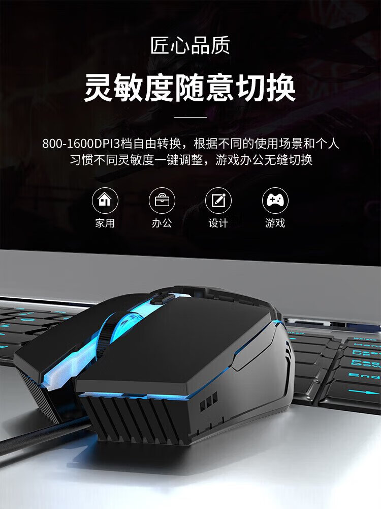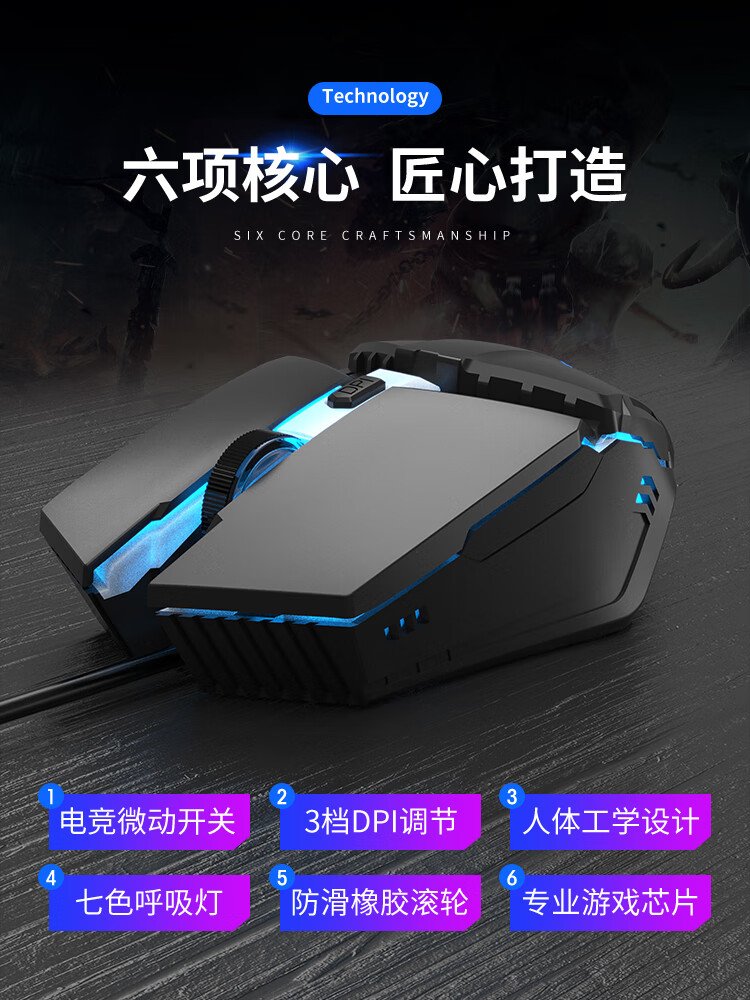 前行者机械手3代静音电竞游戏有线鼠标台式电脑笔记本外接网吧家用宏编程机械鼠标办公绝地求生cf外设 YX110科技黑鼠标【有声宏编程冲量版】